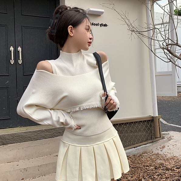 2点セット トップス タンクトップ タートルネック ミディアム丈 タイト 長袖 オフショルダー ショート丈 かわいい 大人可愛い きれいめ シンプル 上品 おしゃれ かっこいい レトロ こなれ感 個性的 主役級 存在感 抜け感 秋 冬 キュート ナチュラル ベーシック クール モード系 エレガント レディース 女性用 ママ OL 通勤 学生 通学 デート お出かけ お泊まり イベント 女子会 休日 カフェ ショッピング レストラン コンパ レイヤード 重ね着 普段使い 着回し S M L XL
