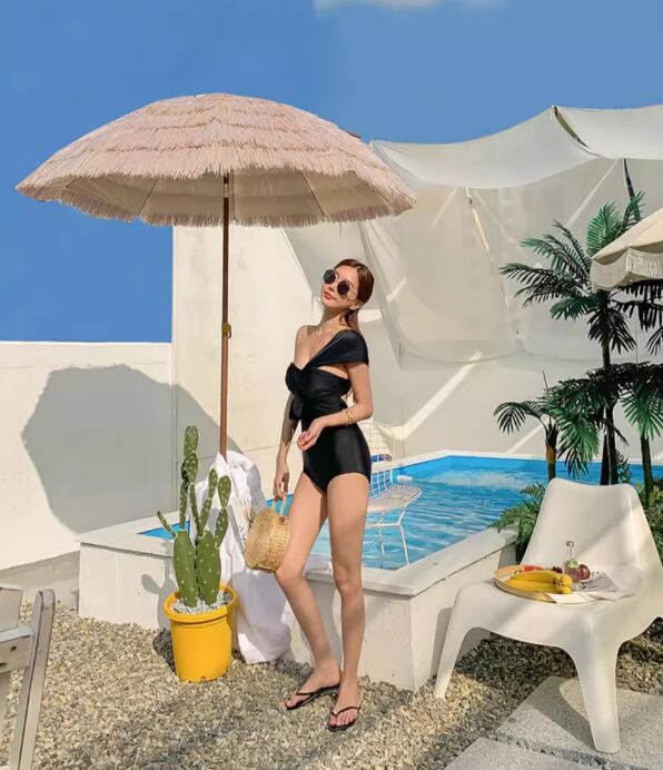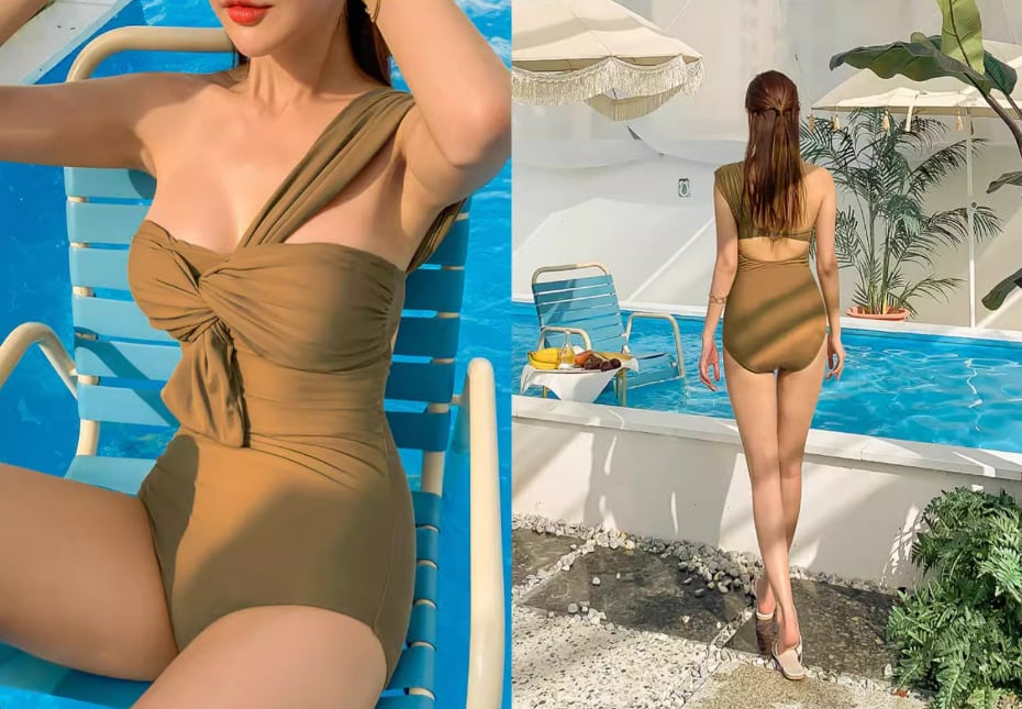 胸元のねじりデザインとワンショルダーがおしゃれなワンピース水着