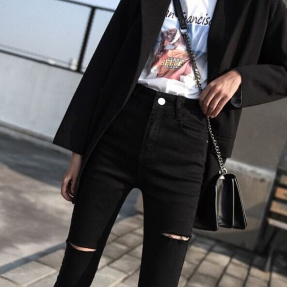 ダメージ加工が施されたデザインで、カジュアルな中にもこなれ感が漂います。