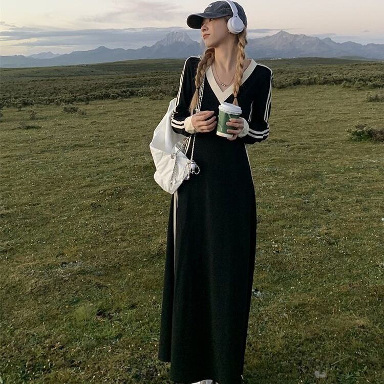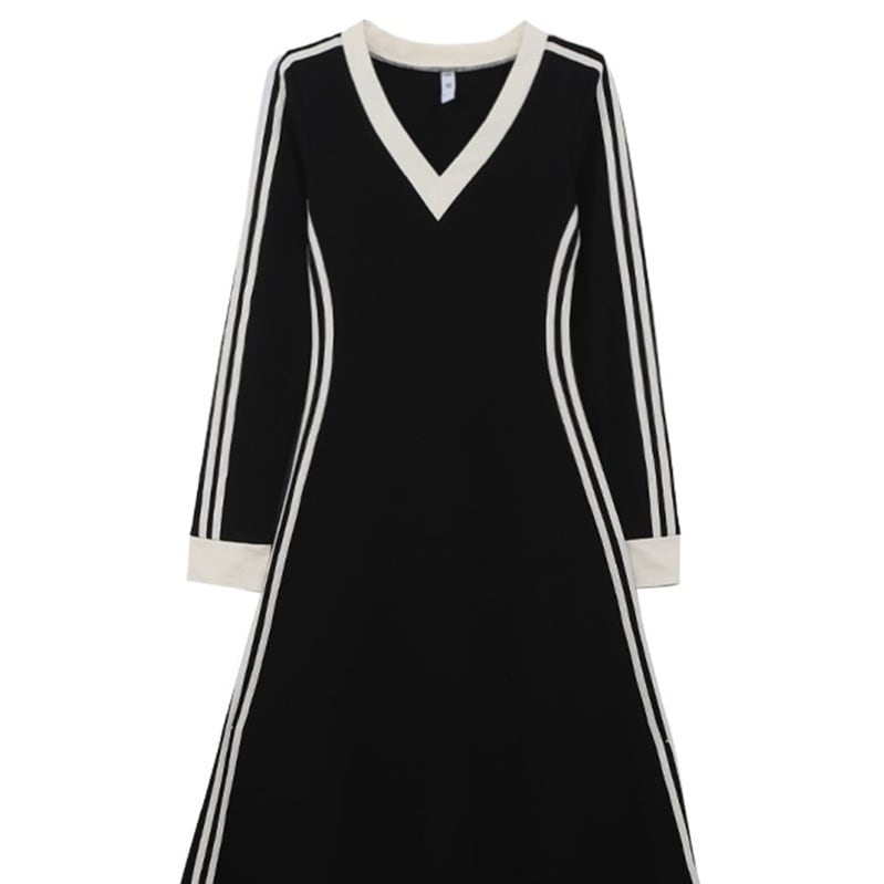 ワンピース ロングワンピース 長袖 Vネック ダブルライン ロング丈 バイカラー かわいい 大人可愛い きれいめ シンプル カジュアル 上品 おしゃれ かっこいい 大人女子 こなれ感 個性的 きちんと 主役級 存在感 キュート ナチュラル ベーシック メンズライク 春 秋 冬 レディース 女性用 OL 通勤 学生 通学 デート お出かけ お泊まり イベント 女子会 休日 カフェ ショッピング 旅行 リゾート コンパ レストラン レイヤード 重ね着 普段使い 着回し 美脚 脚長M L XL 2XL 楽ちん