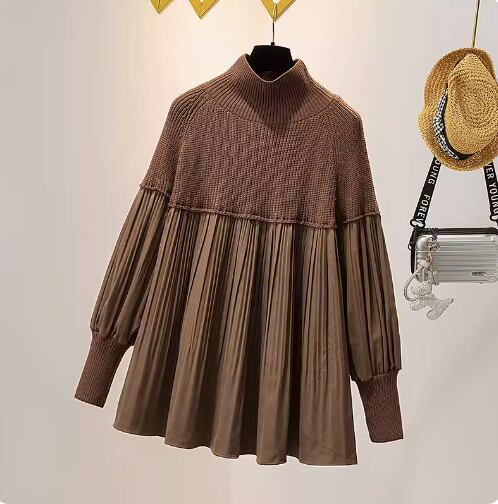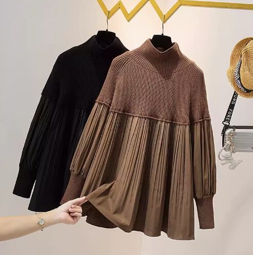 異素材ドッキングトップス トップス プルオーバー 袖あり 長袖 ドルマンスリーブ プリーツ ワイド 切り替えデザイン ドッキング リブ リブニット 伸縮性 かわいい 大人可愛い きれいめ シンプル カジュアル 大人 上品 おしゃれ お洒落 かっこいい レトロ 大人女子 こなれ感 個性的 存在感 無地 秋 10代 20代 30代 40代 レディース 女性用 デート お出かけ 休日 着回し 普段使い 楽ちん 黒 ブラック 茶色 ブラウン