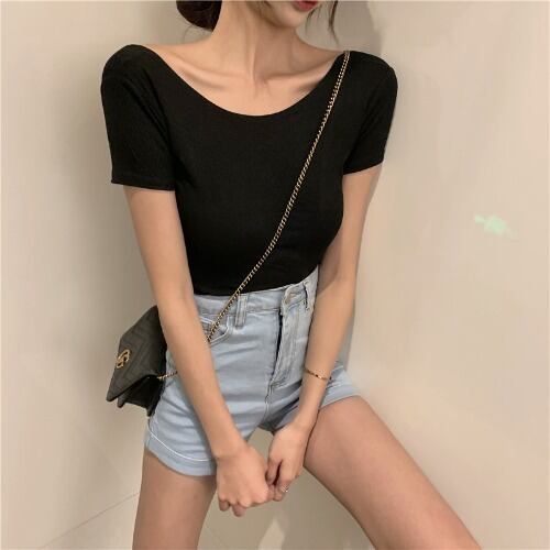 トップス Tシャツ カットソー ショート丈 半袖 背中開き バックシャン タイト かわいい 大人可愛い きれいめ シンプル 上品 おしゃれ かっこいい レトロ こなれ感 きちんと 個性的 主役級 存在感 抜け感 オールシーズン クール ナチュラル ベーシック メンズライク セクシー レディース 女性用 ママ OL 通勤 学生 通学 デート お出かけ お泊まり イベント 女子会 休日 アウトドア カフェ ショッピング レストラン コンパ レイヤード 重ね着 普段使い 着回し デイリー ワンサイズ