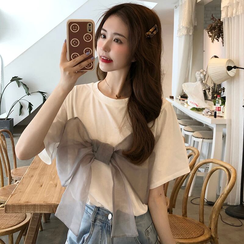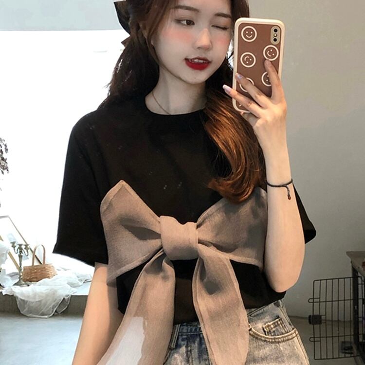 トップス Tシャツ カットソー プルオーバー ミディアム丈 半袖 ラウンドネック リボン りぼん シースルー かわいい 大人可愛い きれいめ シンプル 上品 おしゃれ かっこいい レトロ こなれ感 きちんと 個性的 主役級 存在感 抜け感 春 夏 クール ナチュラル ベーシック メンズライク キュート レディース 女性用 ママ OL 通勤 学生 通学 デート お出かけ お泊まり イベント 女子会 休日 アウトドア カフェ ショッピング レストラン コンパ 普段使い 着回し デイリー L XL 2XL