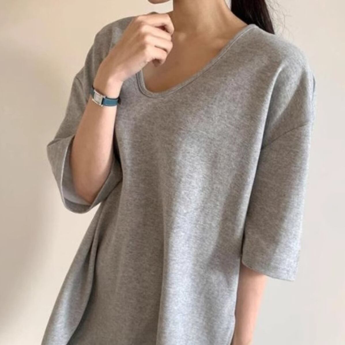 シンプルなデザインながら、Vネックが女性らしい抜け感をプラスし、どんな着こなしにもマッチします。