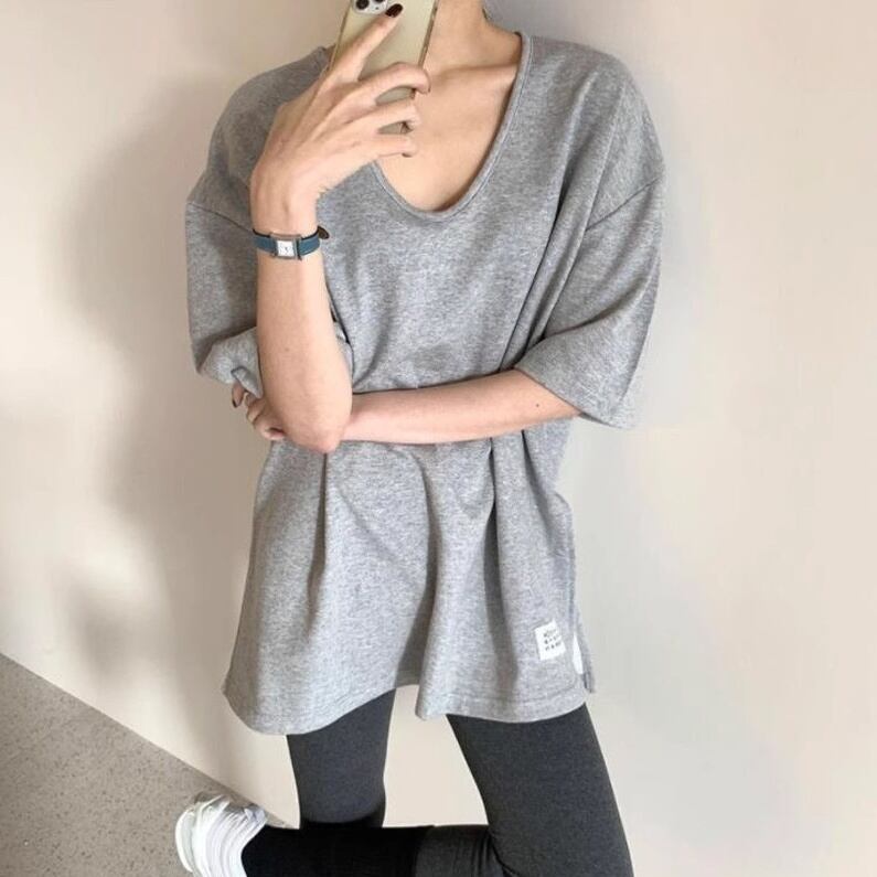 トップス Tシャツ カットソー プルオーバー ミディアム丈 半袖 Vネック かわいい 大人可愛い きれいめ シンプル 上品 おしゃれ かっこいい レトロ ラフ ルーズ こなれ感 きちんと 個性的 主役級 存在感 抜け感 オールシーズン クール ナチュラル ベーシック メンズライク キュート レディース 女性用 ママ マタニティ OL 通勤 学生 通学 デート お出かけ お泊まり イベント 女子会 休日 アウトドア カフェ ショッピング レストラン コンパ 普段使い 着回し デイリー M L XL 2XL