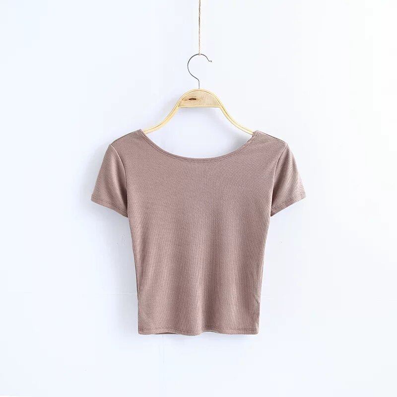 トップス Tシャツ カットソー ショート丈 半袖 背中開き バックシャン タイト かわいい 大人可愛い きれいめ シンプル 上品 おしゃれ かっこいい レトロ こなれ感 きちんと 個性的 主役級 存在感 抜け感 オールシーズン クール ナチュラル ベーシック メンズライク セクシー レディース 女性用 ママ OL 通勤 学生 通学 デート お出かけ お泊まり イベント 女子会 休日 アウトドア カフェ ショッピング レストラン コンパ レイヤード 重ね着 普段使い 着回し デイリー S M モテ