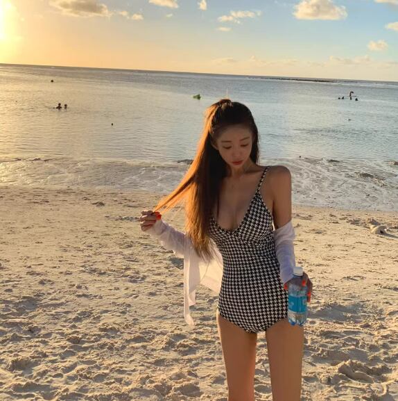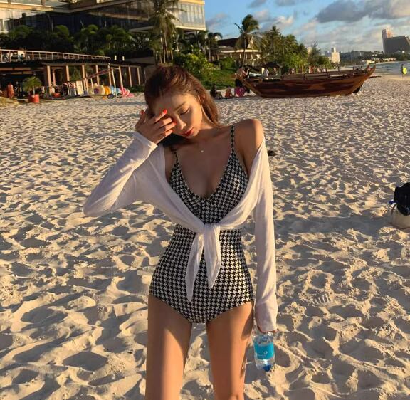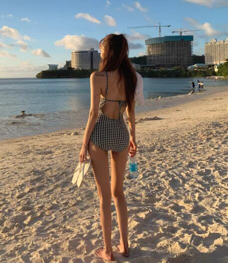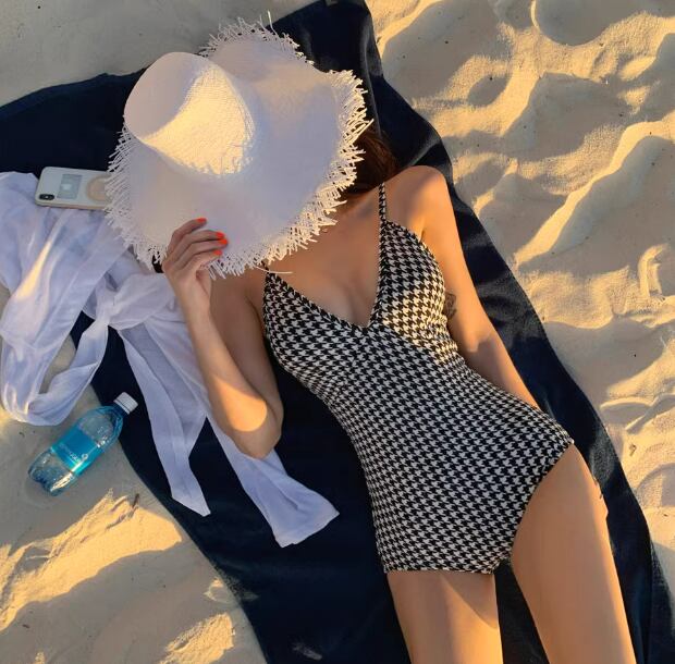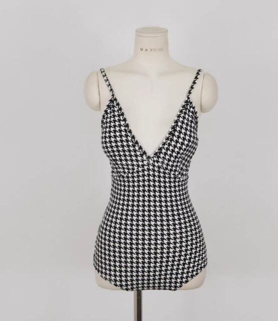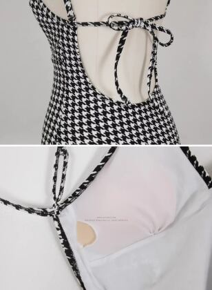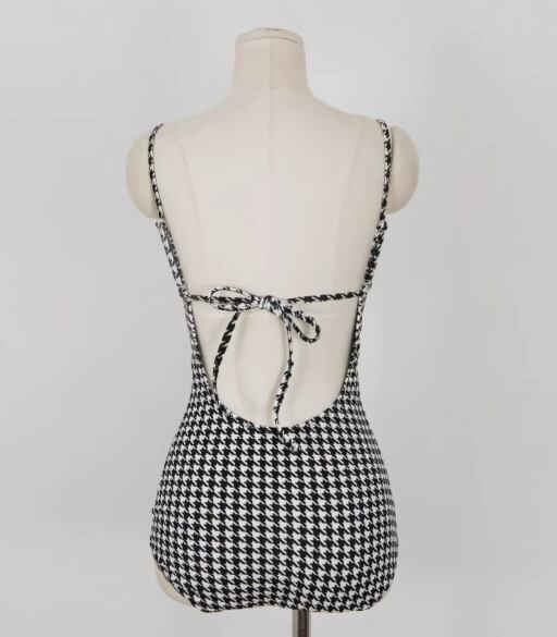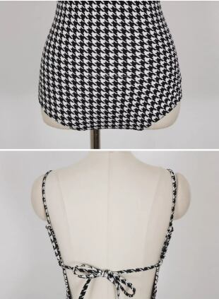 女性らしさを引き立てる、バックリボンが可愛い水着ワンピース。ハイウエストデザインで脚長効果も抜群!パッド付きなので安心して着用できます。千鳥格子柄がレトロで可愛らしい雰囲気を演出してくれます。