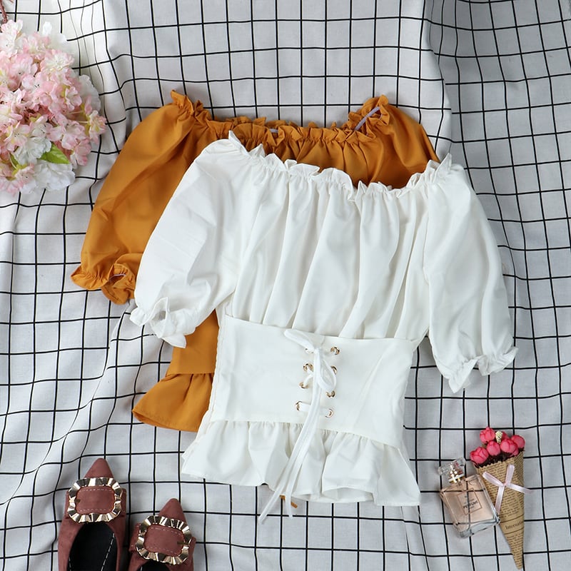 トップス ブラウス ショート丈 半袖 オフショルダー オフショル ウエストマーク レースアップ かわいい 大人可愛い きれいめ シンプル 上品 おしゃれ かっこいい レトロ こなれ感 個性的 主役級 存在感 抜け感 春 夏 ナチュラル ベーシック キュート ガーリー セクシー 無地 レディース 女性用 ママ OL 通勤 オフィス 学生 通学 デート お出かけ お泊まり イベント 女子会 休日 アウトドア カフェ ショッピング レストラン コンパ レイヤード 重ね着 普段使い 着回し ワンサイズ