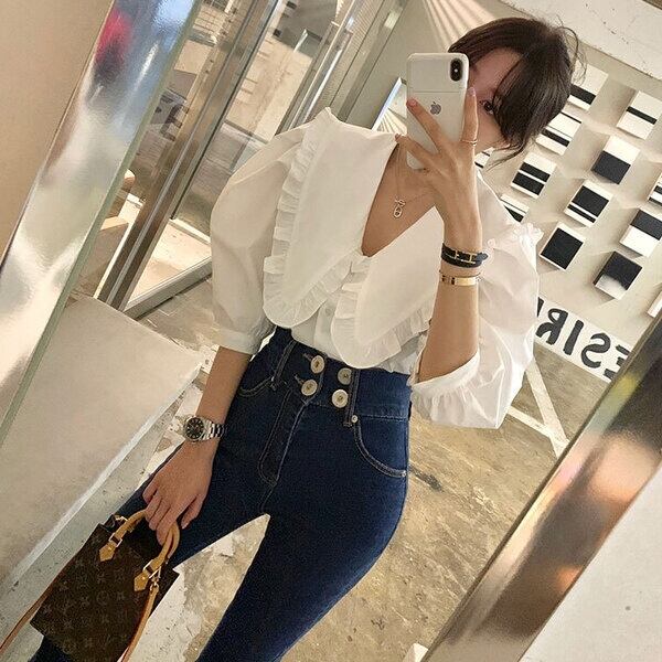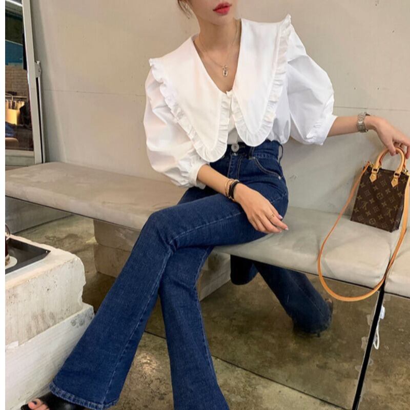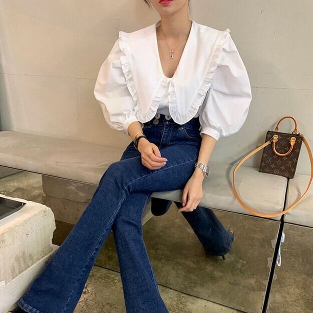トップス シャツ ブラウス ショート丈 7分袖 ビックカラー フリル 前開き ボタン かわいい 大人可愛い きれいめ シンプル 上品 おしゃれ かっこいい レトロ ラフ ルーズ こなれ感 個性的 主役級 存在感 抜け感 オールシーズン ナチュラル ベーシック キュート クール ガーリー フォーマル 無地 レディース 女性用 ママ OL 通勤 オフィス 学生 通学 デート お出かけ お泊まり イベント 女子会 休日 アウトドア カフェ ショッピング レストラン コンパ レイヤード 重ね着 普段使い 着回し