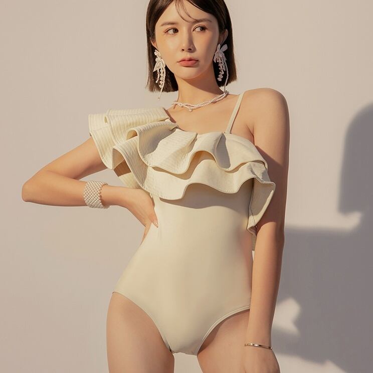 スイムウエア 水着 ワンピース ワンピース水着 ワンショルダー フリル 胸元 谷間 胸パットあり バックシャン オルチャン 可愛い かわいい 大人可愛い シンプル カジュアル 大人 おしゃれ お洒落 大人女子 こなれ感 キュート 個性的 フェミニン エレガント ガーリー セクシー クール 主役級 存在感 抜け感 夏 10代 20代 女性用 レディース ママ デート お出かけ 女子会 休日 イベント 旅行 リゾート 海 プール 美脚 脚長 M L XL モテ スタイルアップ トレンド 定番アイテム
