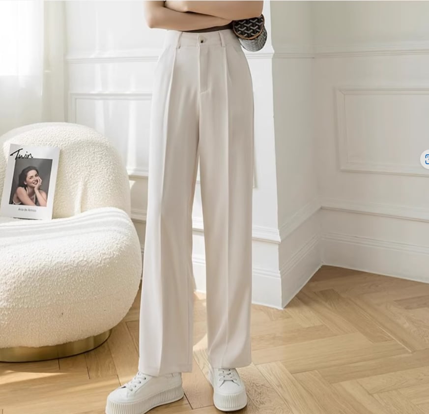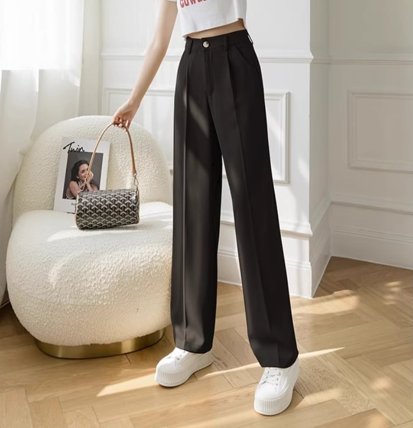 ベーシックなデザインにセンタープレスが入ったスラックスパンツ