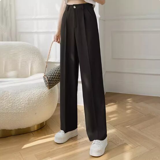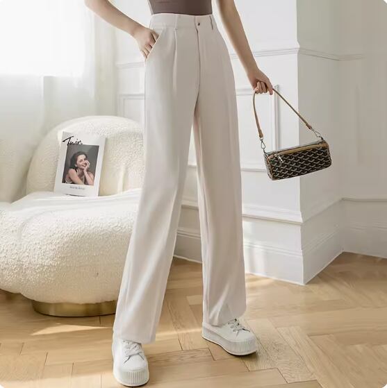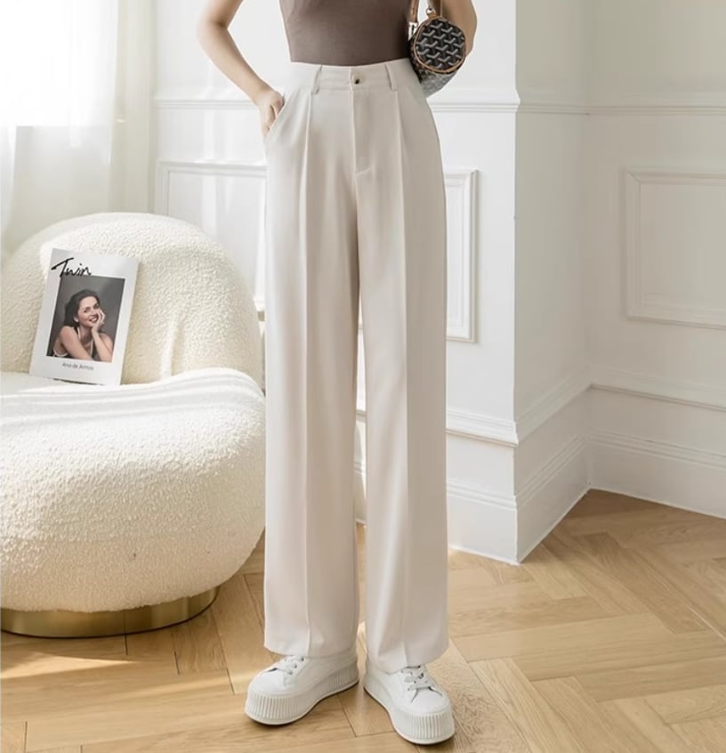 スラックス ボトムス パンツ ロング丈 ストレート きれいめ シンプル おしゃれ お洒落 かっこいい クール エレガント とろみ感 無地 春 夏 秋 10代 20代 30代 40代 レディース 女性用 ママ オフィス ビジネス OL 通勤 お出かけ 休日 着回し 普段使い 体型カバー S M L XL 黒 ブラック アプリコット オートミール