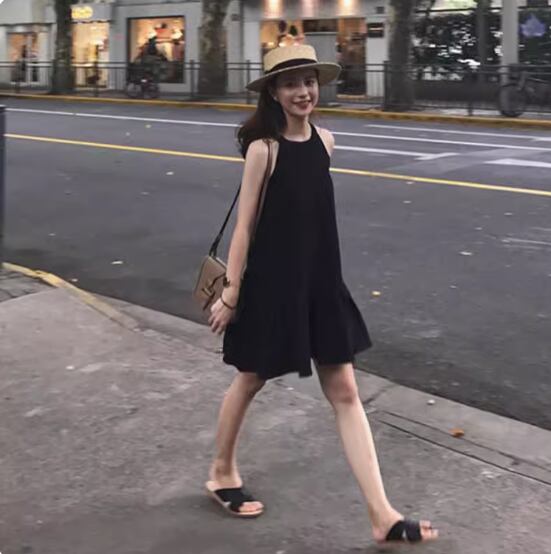ワンピース ミニ丈 袖なし ノースリーブ ラウンドネック Aライン 切り替えデザイン かわいい 大人可愛い シンプル カジュアル おしゃれ お洒落 大人女子 ガーリー 無地 夏 10代 20代 30代 レディース 女性用 デート お出かけ 休日 イベント リゾート 旅行 海 プール 着回し 普段使い 重ね着 楽ちん S M L XL 黒 ブラック