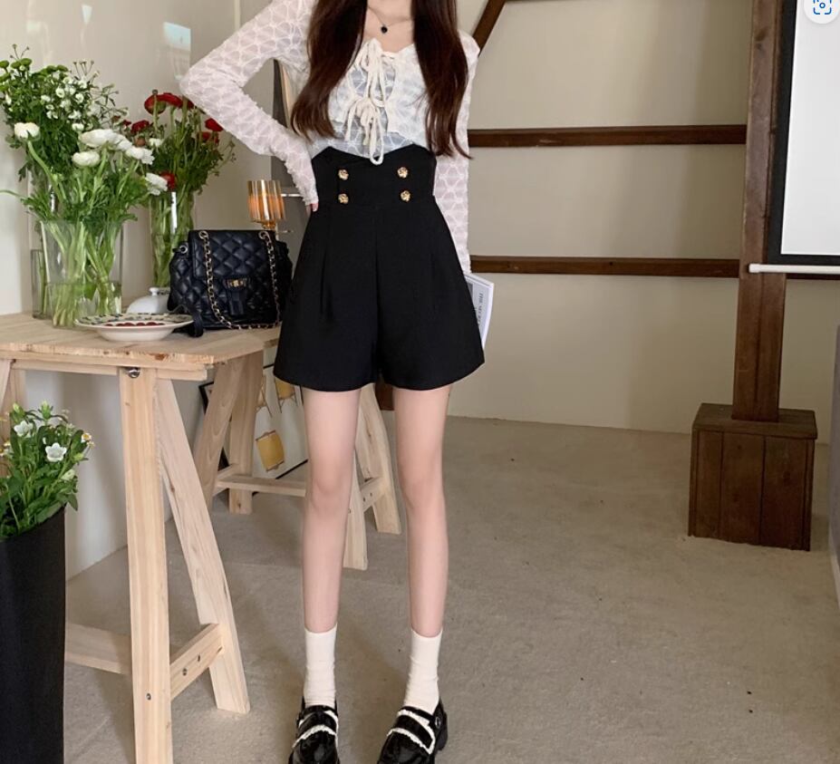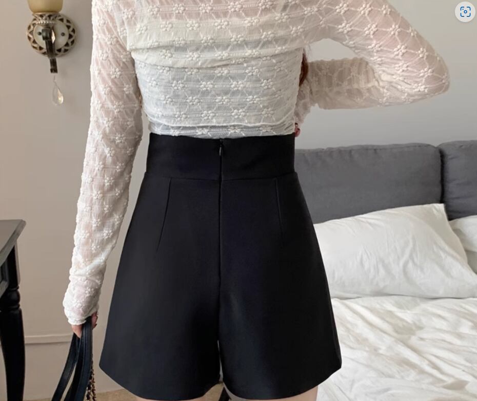 ウエストデザインショートパンツ ボトムス ショート丈 ファスナー ハイウエスト かわいい 大人可愛い きれいめ シンプル 上品 おしゃれ お洒落 レトロ 大人女子 無地 秋 冬 10代 20代 レディース 女性用 デート お出かけ 休日 着回し 普段使い M L XL 2XL 黒 ブラック