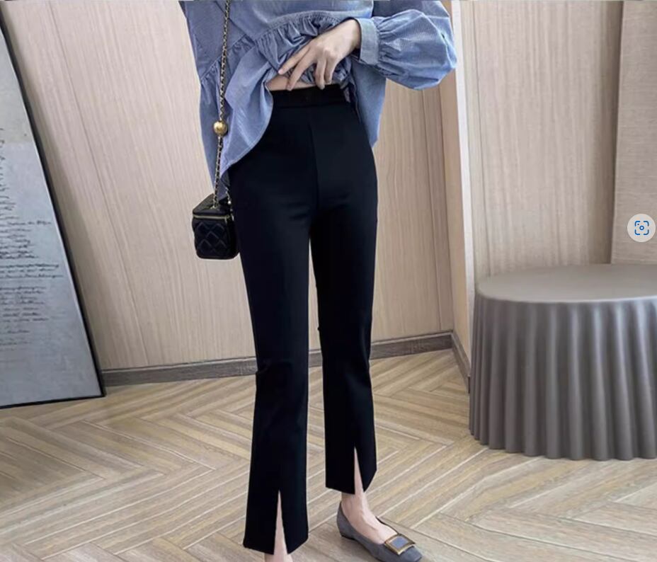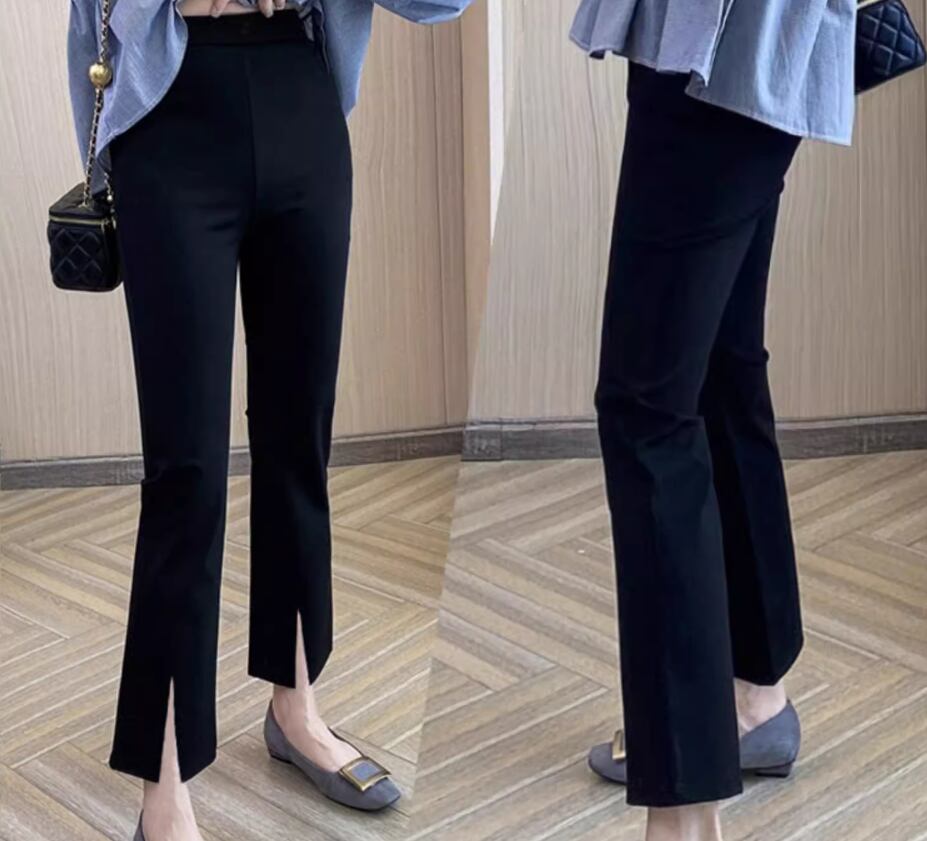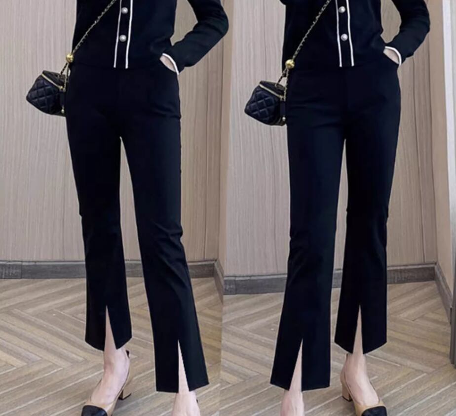 フロントスリットパンツ クロップドパンツ ロング丈 9分丈 スリット ハイウエスト 伸縮性 きれいめ シンプル カジュアル 大人 上品 おしゃれ お洒落 大人女子 無地 春 秋 10代 20代 30代 40代 レディース 女性用 ママ オフィス 通勤 お出かけ 休日 着回し 普段使い 楽ちん 体型カバー 美脚 脚長 XS S M L XL 2XL 黒 ブラック