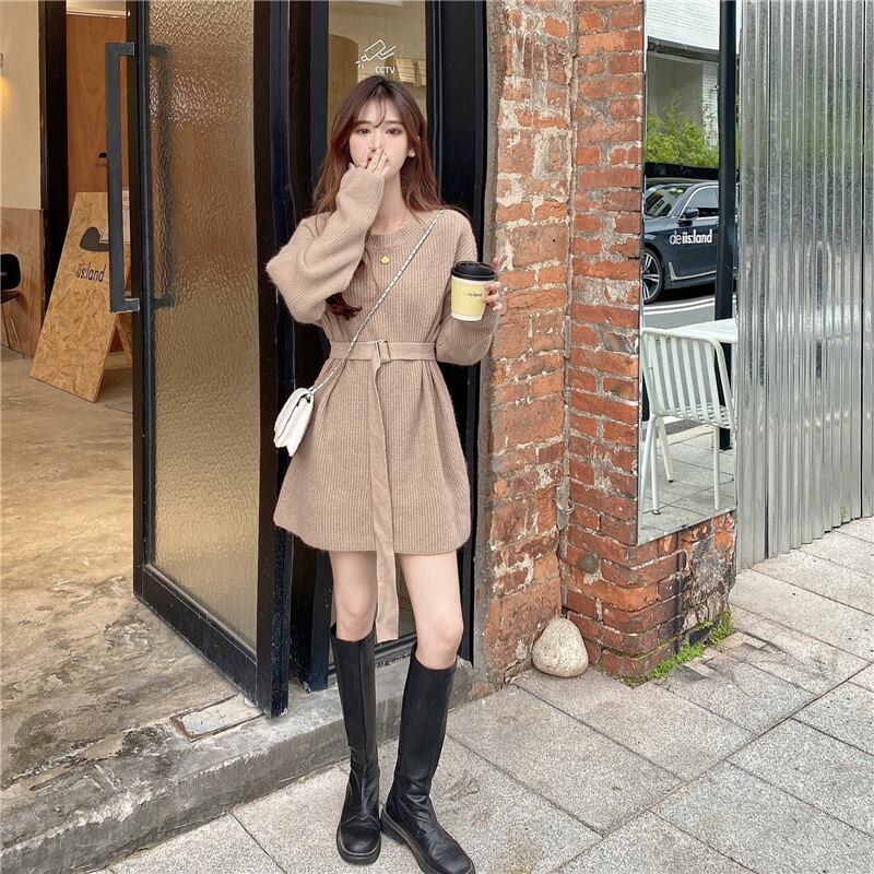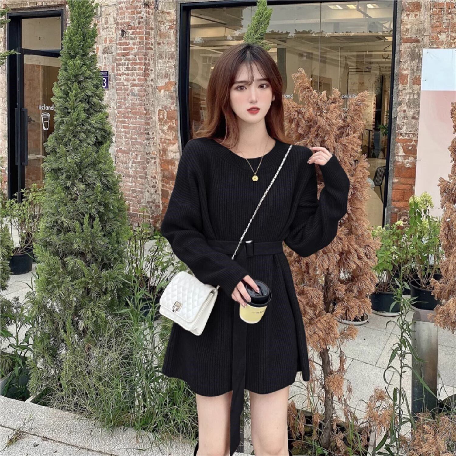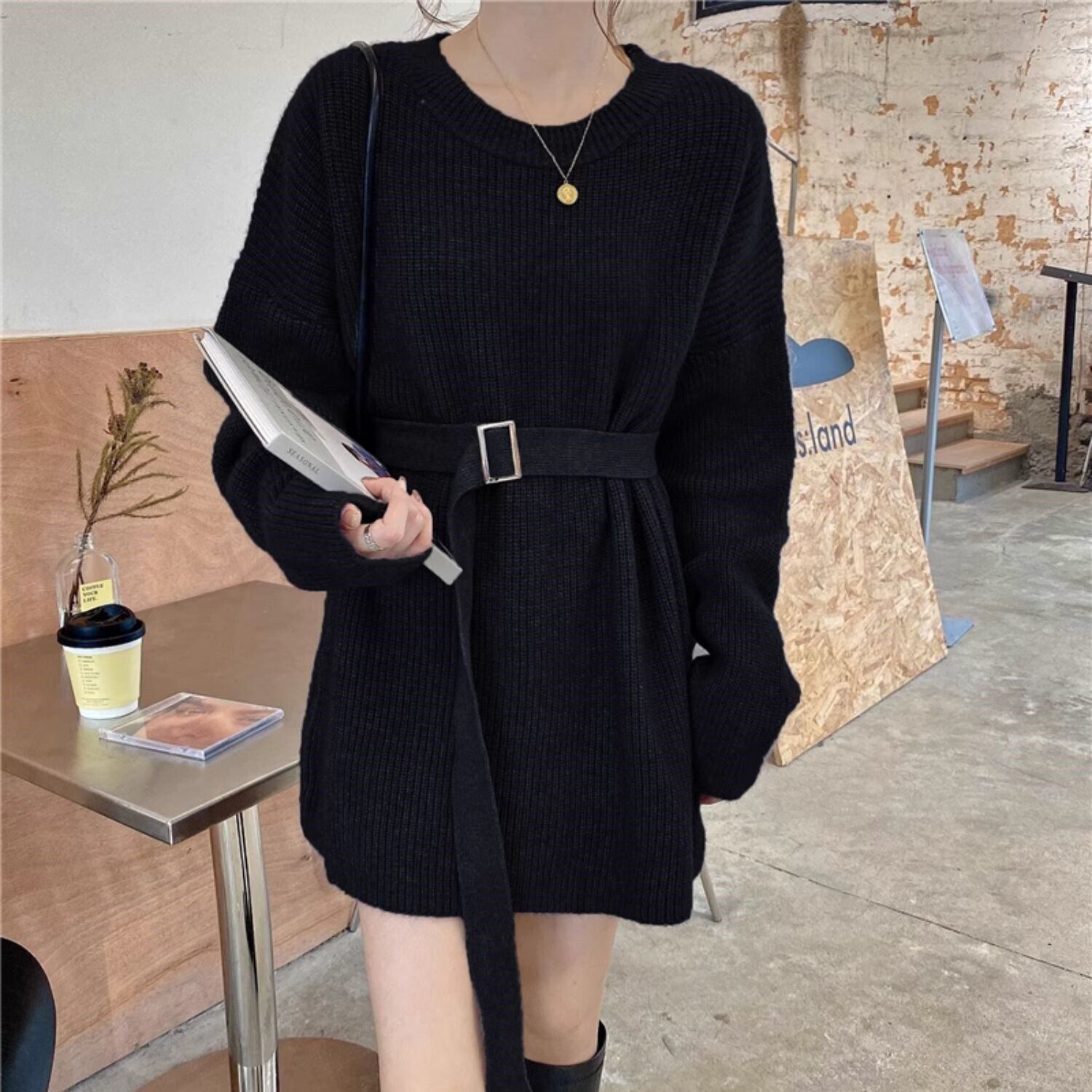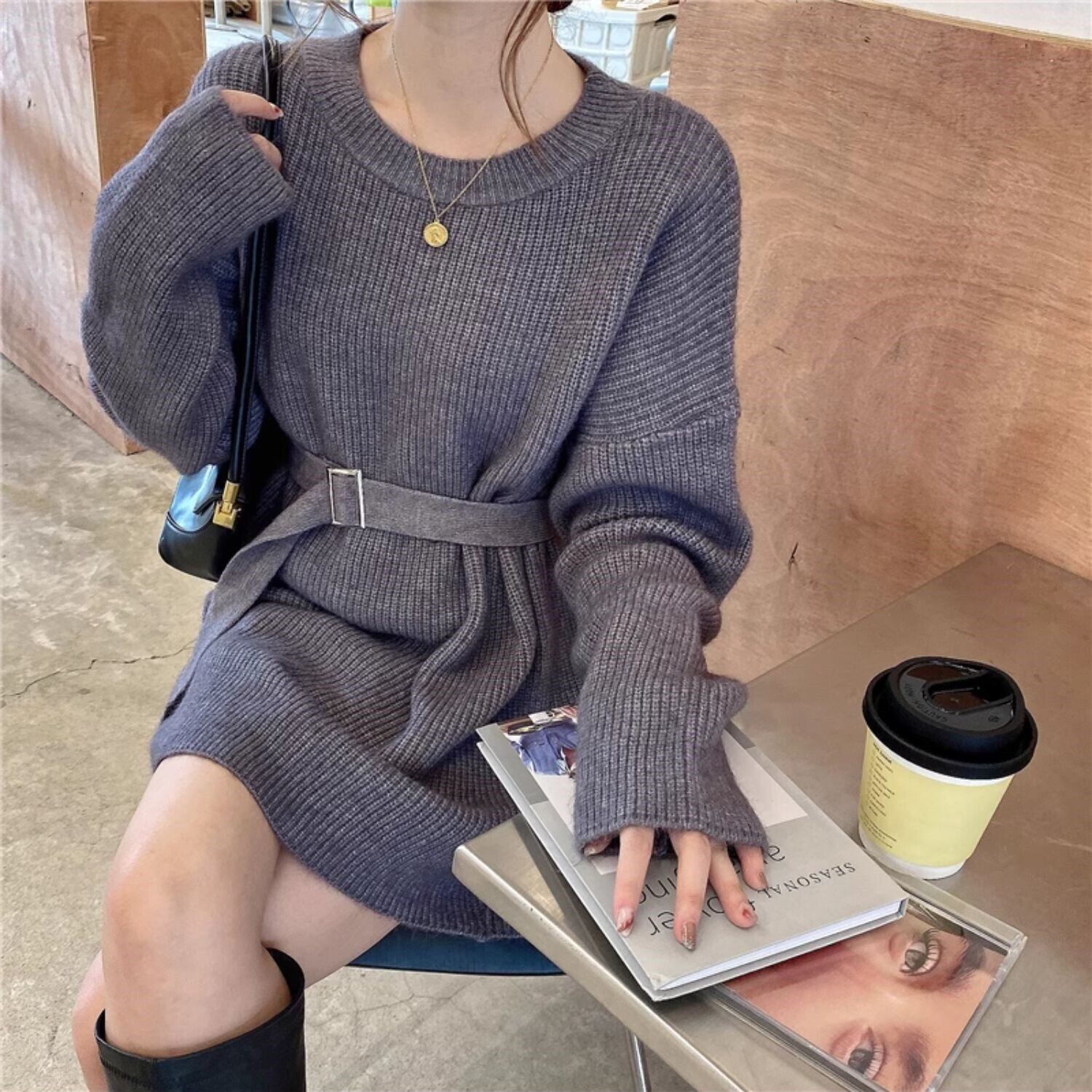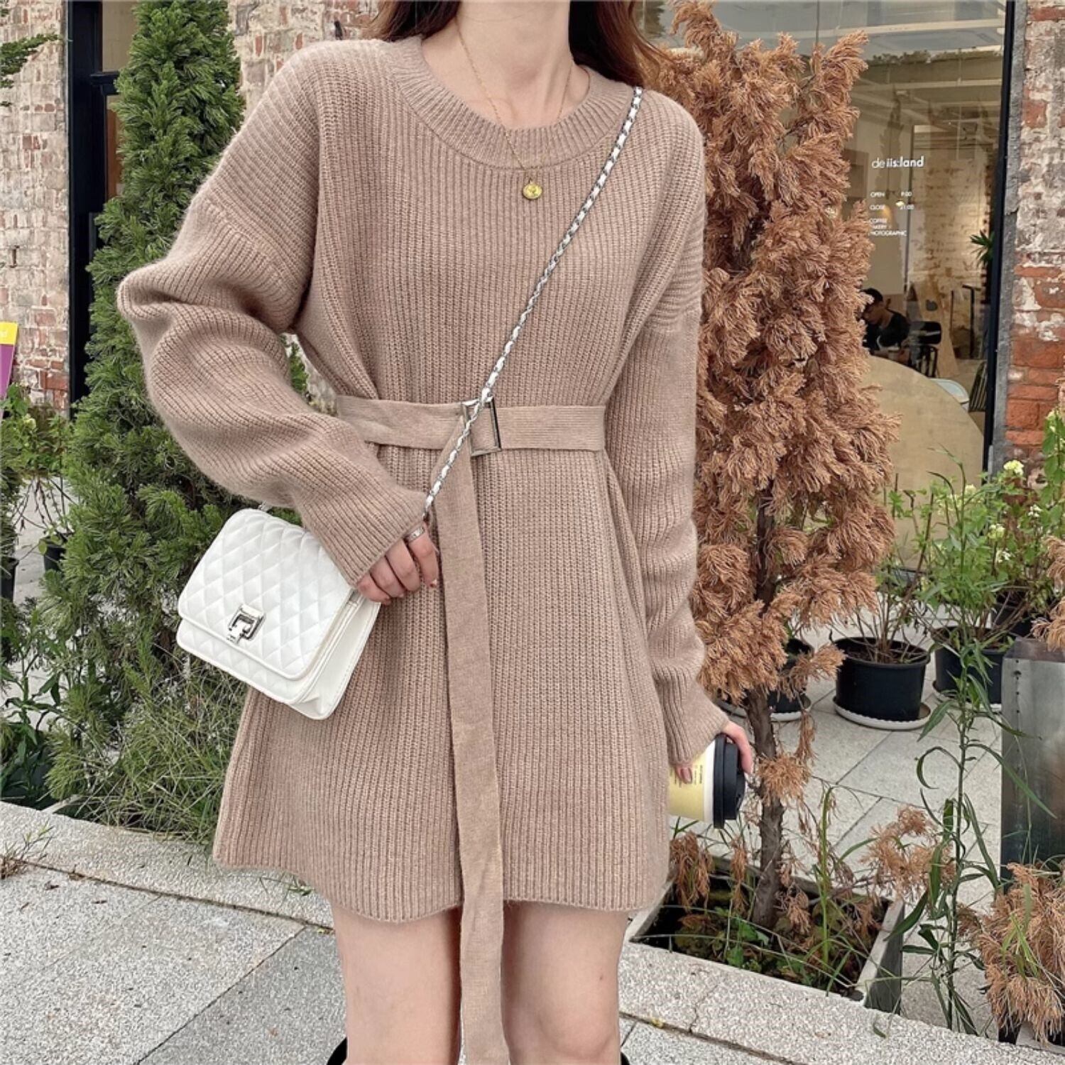 レディース ワンピース ニット セーター 長袖 ラウンドネック ストレート ベルト ウエストマーク かわいい 大人可愛い きれいめ シンプル カジュアル 上品 おしゃれ レトロ ラフ ガーリー ラブリー キュート 無地 春 秋 通勤 学生 学校 通学 デート お出かけ 女子会 ショッピング カフェ 韓国 コーデ 楽ちん 普段使い 着回し モテ トレンド 流行 インスタ映え M L XL 2XL 3XL 4XL 大きいサイズ ゆったり ブラック グレー キャメル