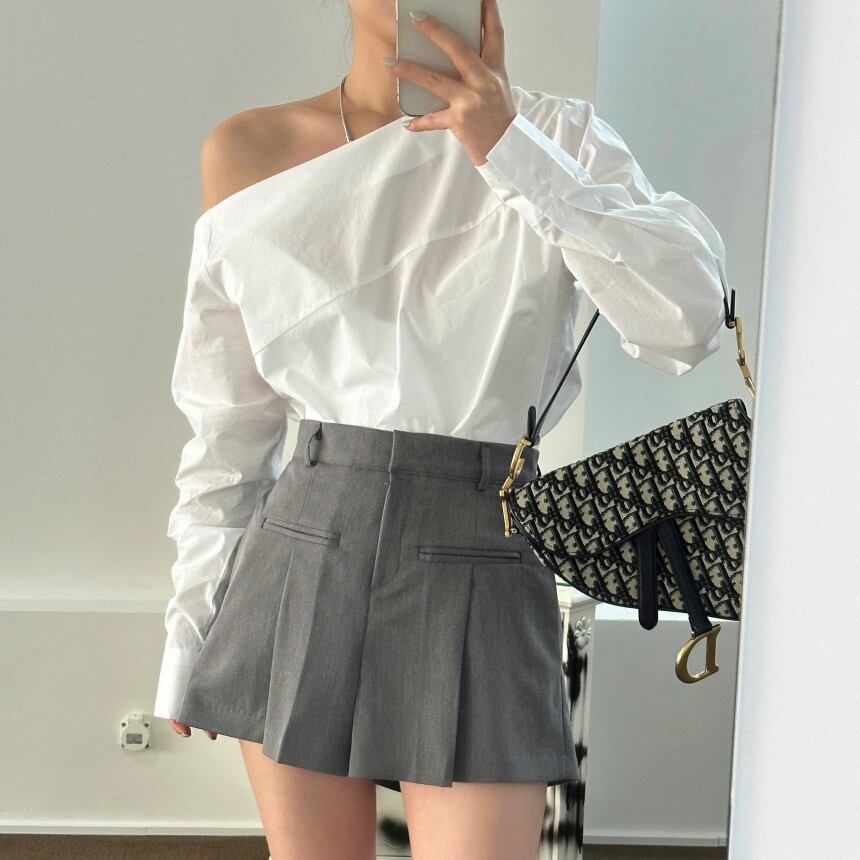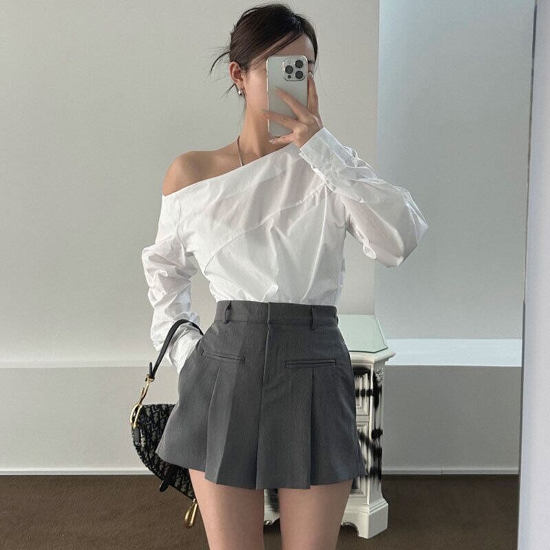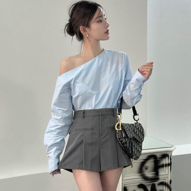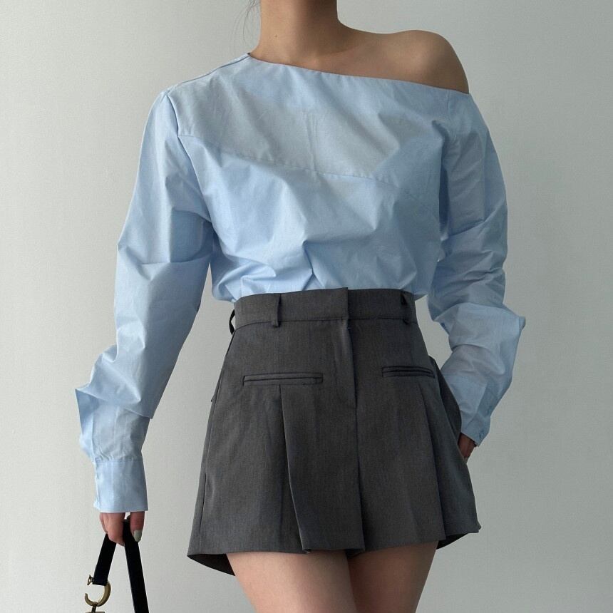 トップス シャツ ブラウス プルオーバー ミディアム丈 長袖 ワンショルダー 薄手 かわいい 大人可愛い きれいめ シンプル 上品 おしゃれ かっこいい レトロ こなれ感 個性的 主役級 存在感 抜け感 春 夏 ナチュラル ベーシック キュート ガーリー メンズライク 無地 レディース 女性用 ママ OL 通勤 オフィス 学生 通学 デート お出かけ お泊まり イベント 女子会 休日 アウトドア カフェ ショッピング レストラン コンパ レイヤード 重ね着 普段使い 着回し ワンサイズ トレンド モテ