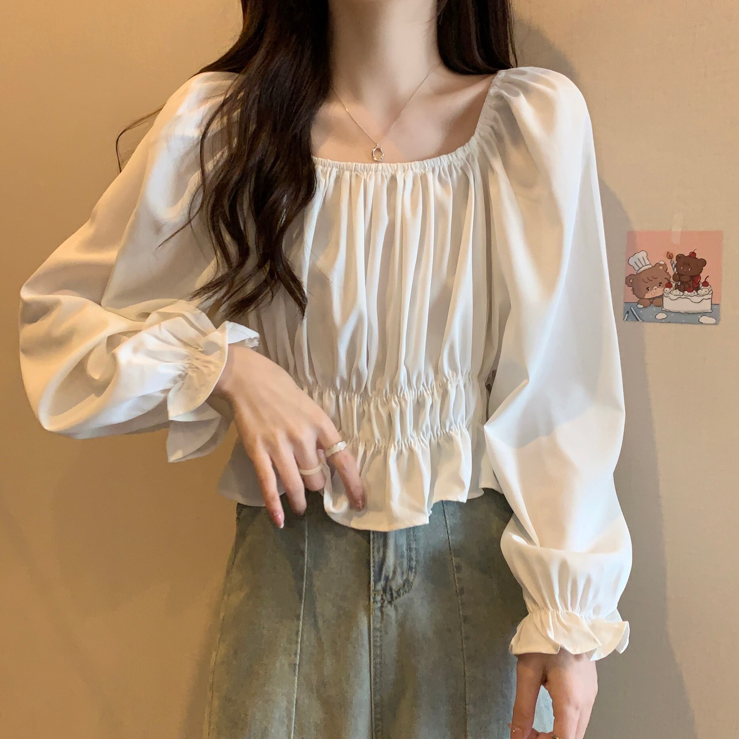 トップス ブラウス プルオーバー ショート丈 長袖 スクエアネック ウエストマーク かわいい 大人可愛い きれいめ シンプル 上品 おしゃれ かっこいい レトロ こなれ感 個性的 主役級 存在感 抜け感 春 夏 秋 ナチュラル ベーシック キュート ガーリー メンズライク 無地 レディース 女性用 ママ OL 通勤 学生 通学 デート お出かけ お泊まり イベント 女子会 休日 アウトドア カフェ ショッピング レストラン コンパ レイヤード 重ね着 普段使い 着回し ワンサイズ モテ トレンド