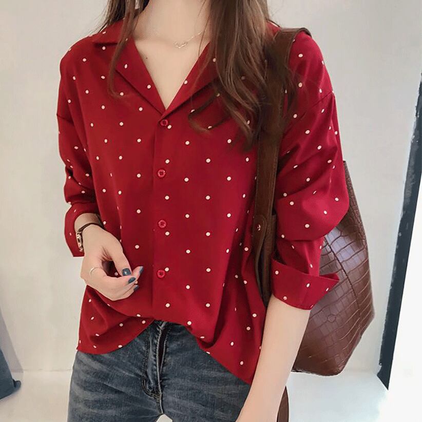 トップス シャツ シフォンシャツ ミディアム丈 長袖 襟付き 前開き ボタン かわいい 大人可愛い きれいめ シンプル 上品 おしゃれ かっこいい レトロ きちんと こなれ感 個性的 主役級 存在感 抜け感 オールシーズン ナチュラル ベーシック キュート クール メンズライク ドット柄 レディース 女性用 ママ OL 通勤 オフィス 学生 通学 デート お出かけ お泊まり イベント 女子会 休日 カフェ ショッピング レストラン コンパ レイヤード 重ね着 普段使い 着回し M L XL 2XL