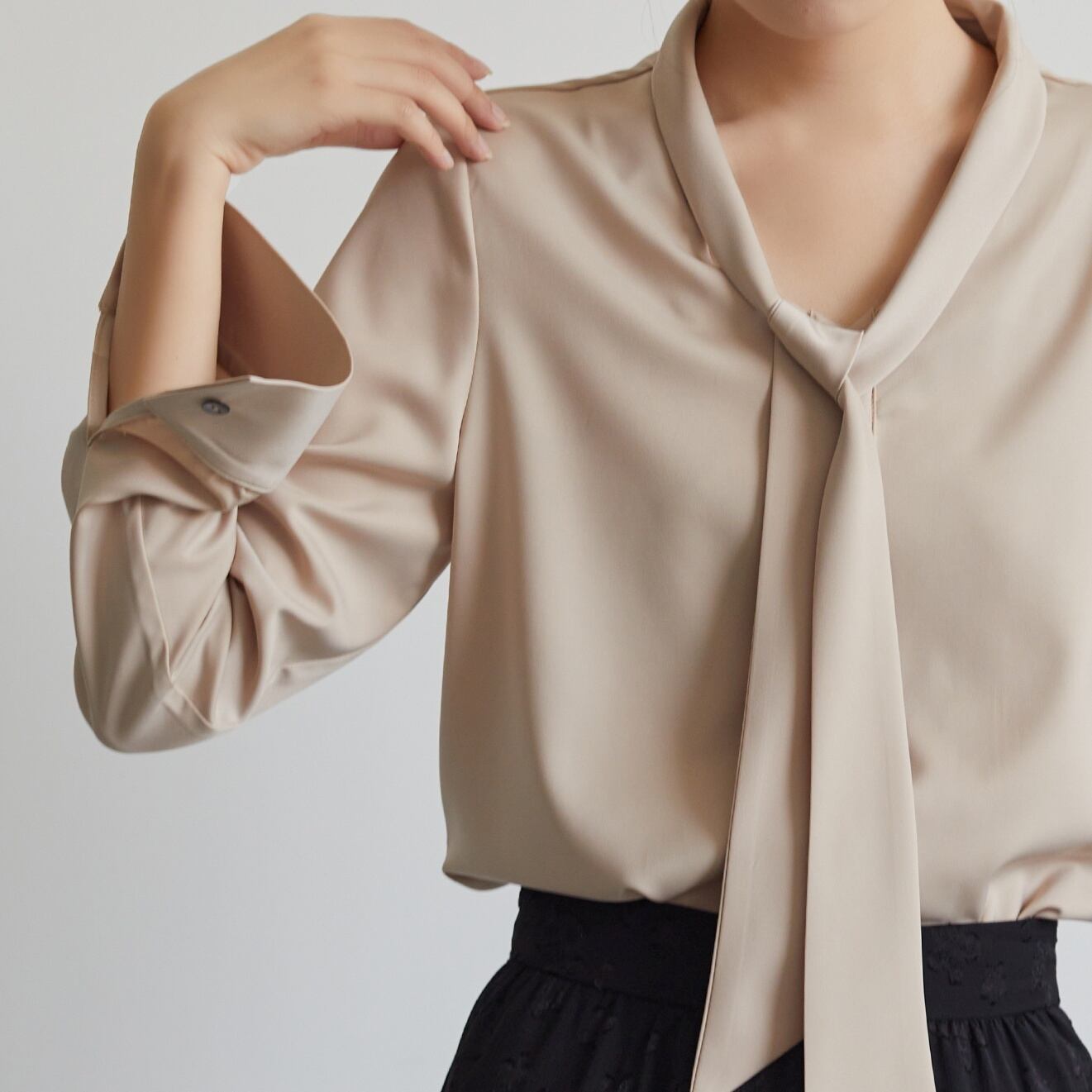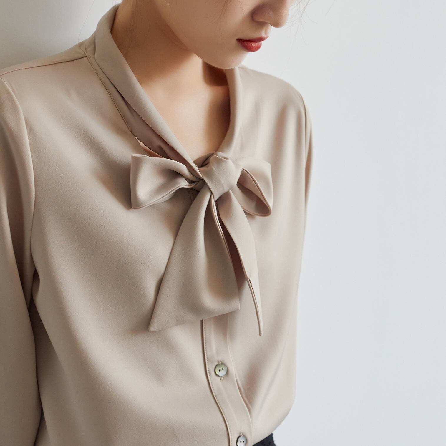 トップス シャツ シフォンシャツ ミディアム丈 プルオーバー 長袖 ボウタイ かわいい 大人可愛い きれいめ シンプル 上品 おしゃれ かっこいい レトロ きちんと こなれ感 個性的 主役級 存在感 抜け感 オールシーズン ナチュラル ベーシック キュート クール メンズライク フォーマル 無地 レディース 女性用 ママ OL 通勤 オフィス 学生 通学 デート お出かけ お泊まり イベント 女子会 休日 カフェ ショッピング レストラン コンパ レイヤード 重ね着 普段使い 着回し S M L XL