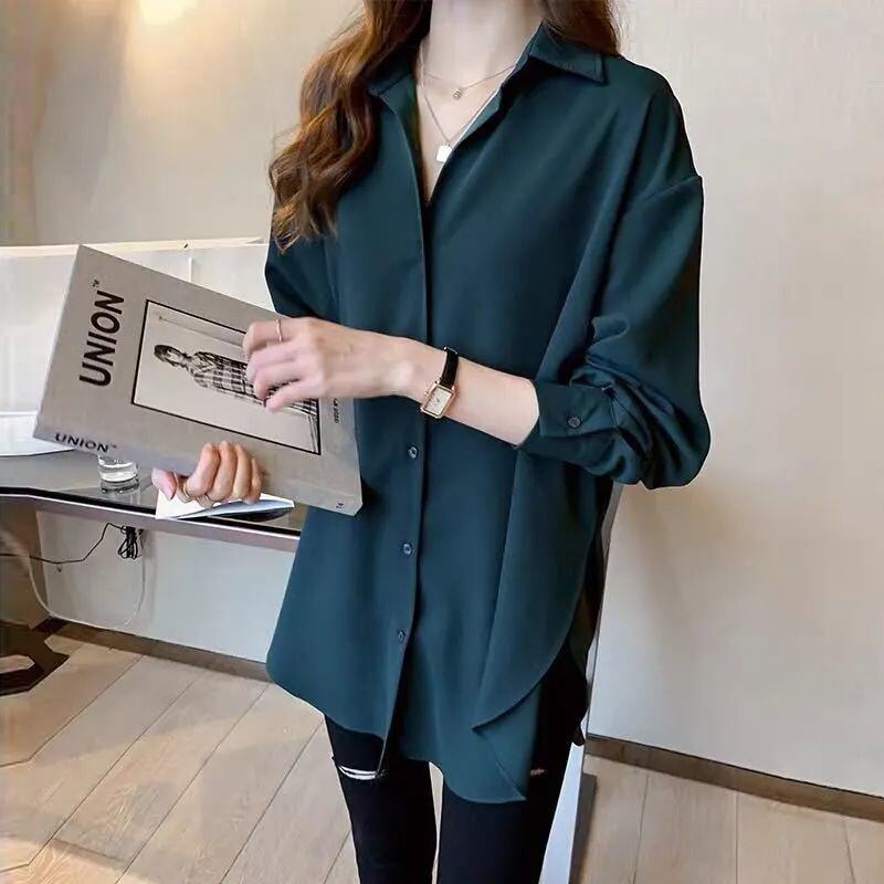 トップス シャツ シフォンシャツ ミディアム丈 長袖 襟付き 前開き ボタン かわいい 大人可愛い きれいめ シンプル 上品 おしゃれ かっこいい レトロ きちんと こなれ感 個性的 主役級 存在感 抜け感 オールシーズン ナチュラル ベーシック キュート クール メンズライク 無地 レディース 女性用 ママ OL 通勤 オフィス 学生 通学 デート お出かけ お泊まり イベント 女子会 休日 カフェ ショッピング レストラン コンパ レイヤード 重ね着 普段使い 着回し M 2XL 3XL 4XL