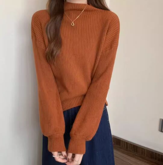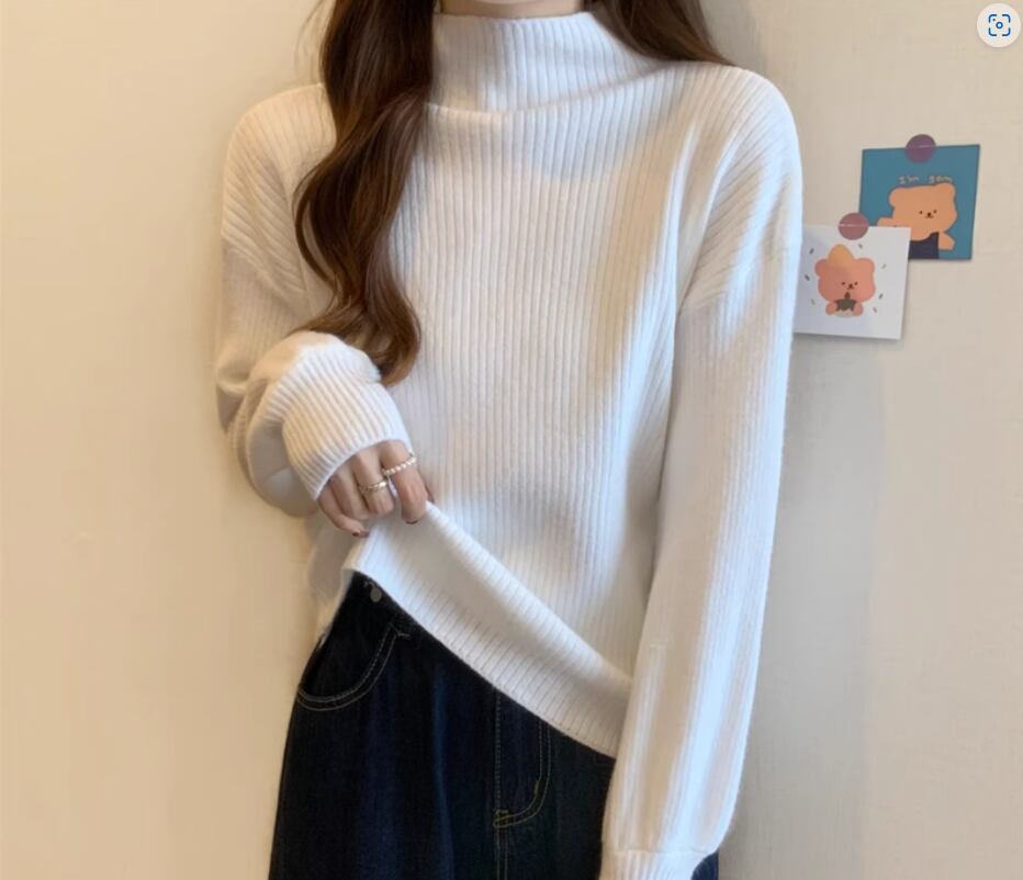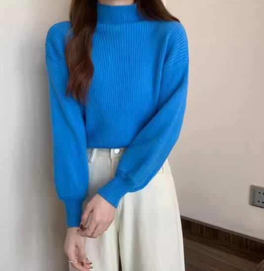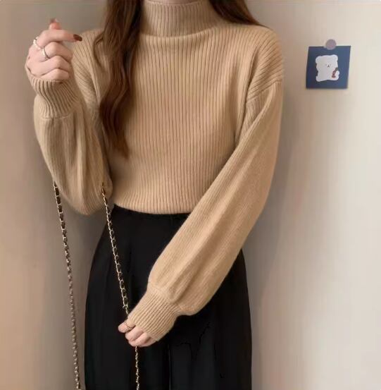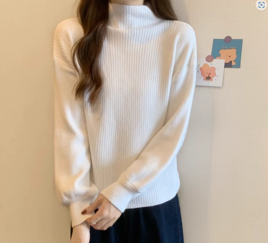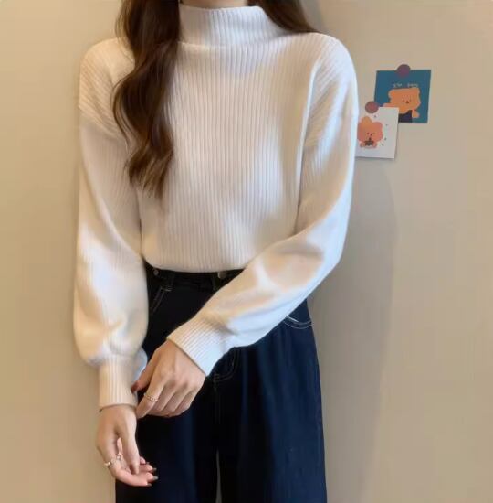 トップス 白トップス 袖あり 長袖 ボリューム袖 ドロップショルダー ハイネック ストレート リブニット 伸縮性 きれいめ シンプル カジュアル 大人 上品 おしゃれ お洒落 大人女子 こなれ感 無地 秋 冬 20代 30代 40代 レディース 女性用 お出かけ 休日 着回し 普段使い フリーサイズ 白 ホワイト 黒 ブラック 赤 レッド 青 ブルー アプリコット キャラメル オートミール