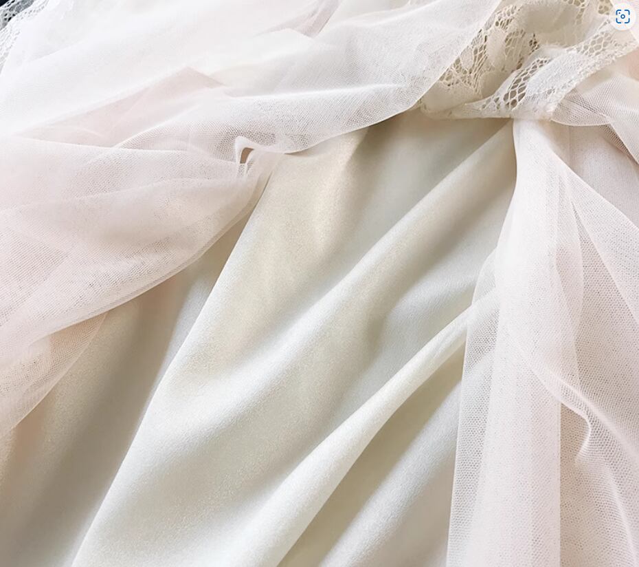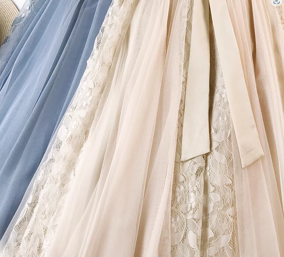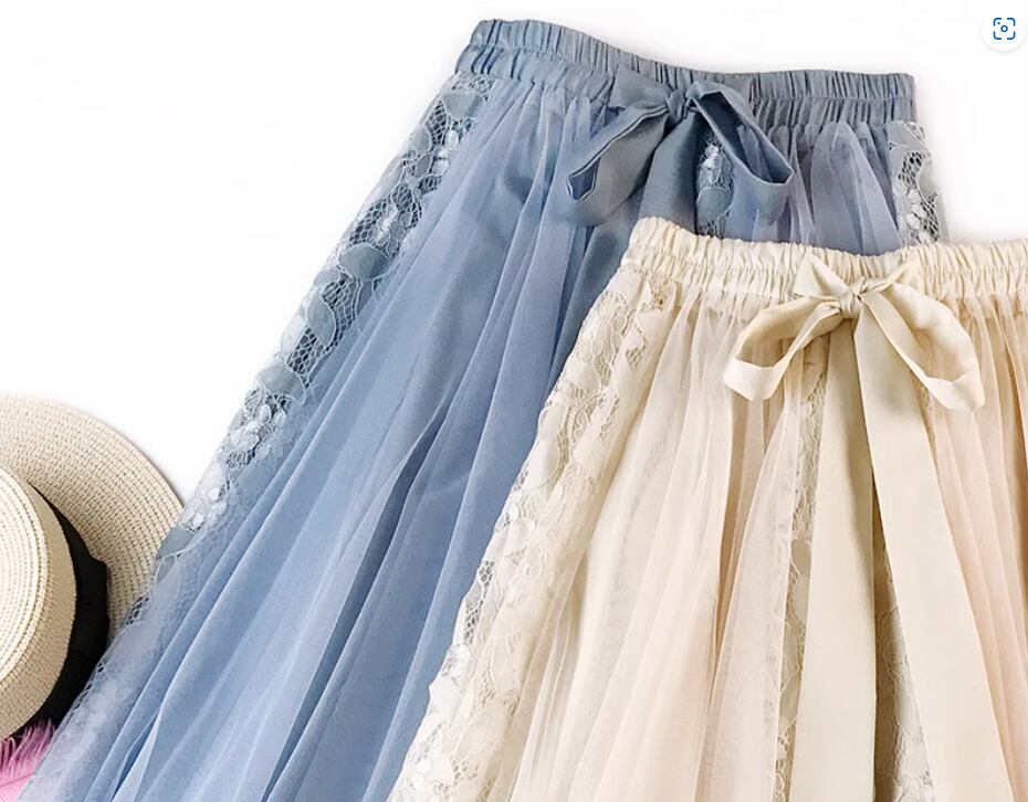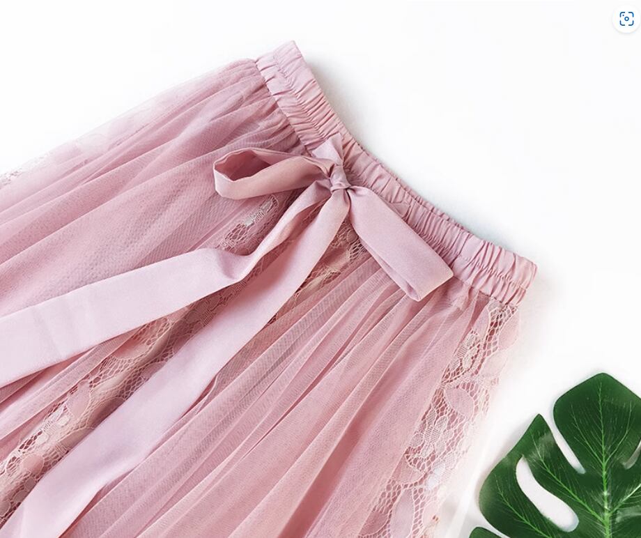 チュール×レースが女性らしいミディアムスカート