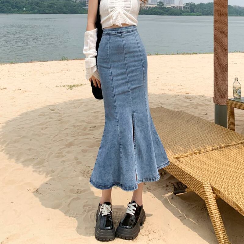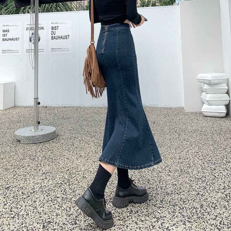 ボトムス スカート ロングスカート デニムスカート ハイウエスト マーメイドスカート フリントスリット デニム かわいい 大人可愛い きれいめ シンプル カジュアル 上品 おしゃれ かっこいい 大人女子 こなれ感 個性的 レトロ 主役級 存在感 キュート クール ナチュラル ベーシック メンズライク オールシーズン レディース 女性用 ママ OL 通勤 学生 通学 デート お出かけ お泊まり イベント 女子会 休日 カフェ ショッピング 旅行 リゾート コンパ 普段使い 着回し 脚長 XS S M L