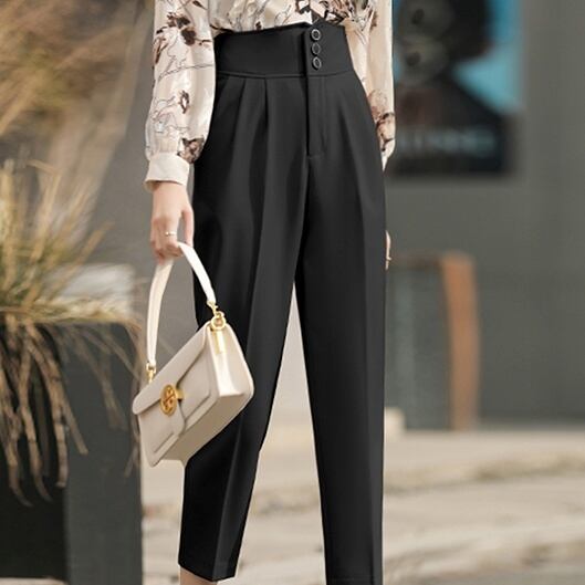 ハイウエスト仕様で腰周りもすっきりとした印象に。ポケット付きで機能性も抜群です。