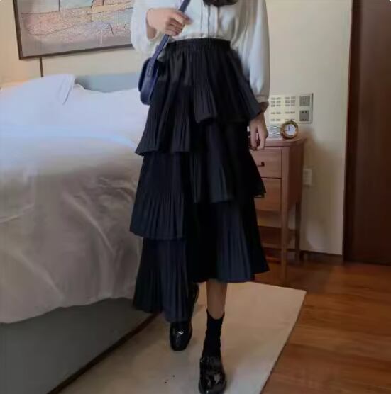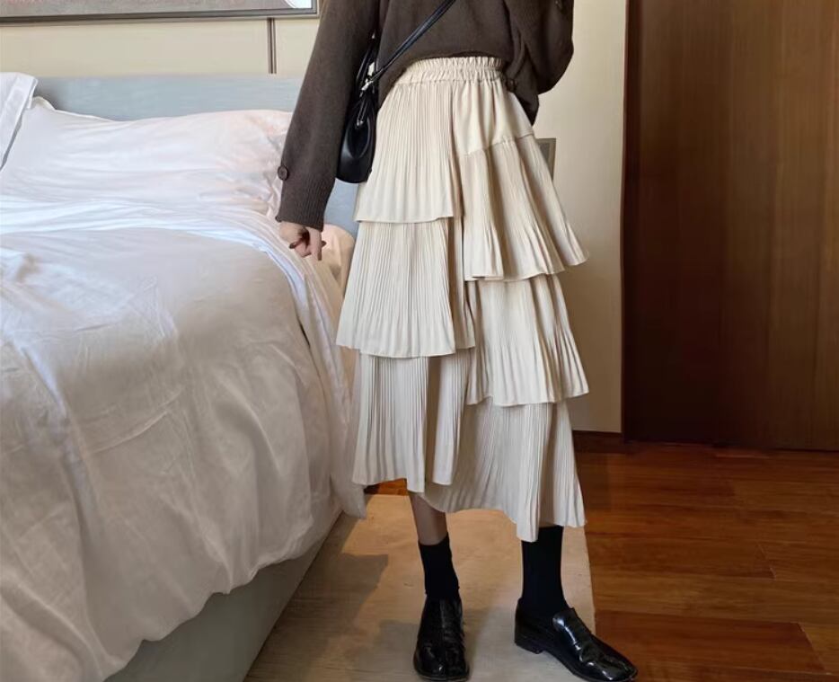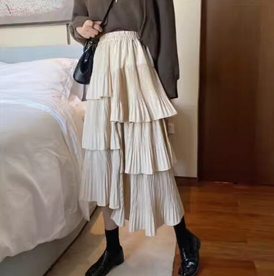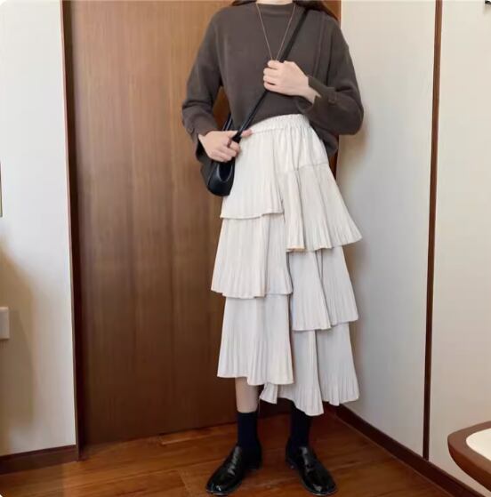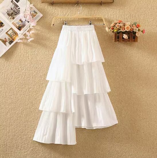 チュールスカート ミディアム丈 Aライン アシンメトリー プリーツ フリル ポリエステル かわいい 大人可愛い シンプル カジュアル おしゃれ お洒落 個性的 存在感 無地 春 夏 秋 10代 20代 30代 40代 レディース 女性用 お出かけ 休日 着回し 普段使い 楽ちん 体型カバー フリーサイズ 白 ホワイト 黒 ブラック アプリコット