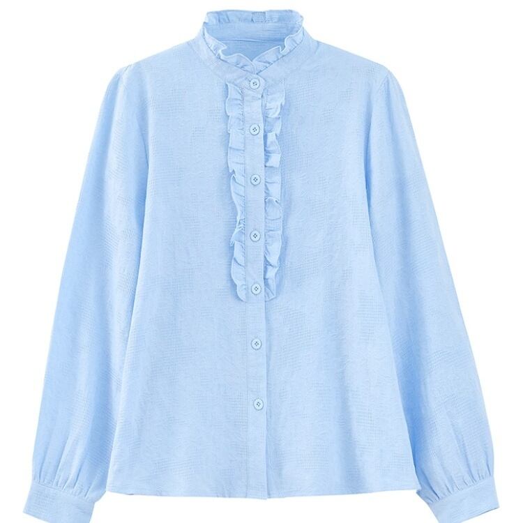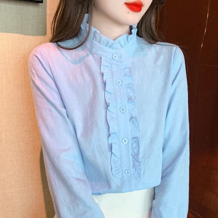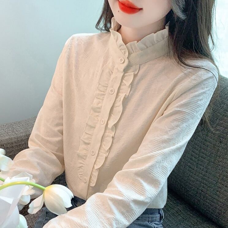 トップス シャツ ブラウス ミディアム丈 長袖 ハイネック 前開き ボタン フリル かわいい 大人可愛い きれいめ シンプル 上品 おしゃれ かっこいい レトロ こなれ感 個性的 主役級 存在感 抜け感 オールシーズン ナチュラル ベーシック キュート ガーリー フォーマル 清楚 無地 レディース 女性用 ママ OL 通勤 オフィス 学生 通学 デート お出かけ お泊まり イベント 女子会 休日 アウトドア カフェ ショッピング レストラン コンパ レイヤード 重ね着 普段使い 着回し S M L XL