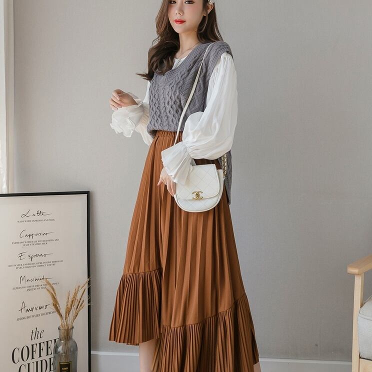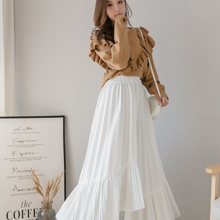 ボトムス スカート ロングスカート プリーツスカート ウエストゴム フレア アシンメトリー 揺れる かわいい 大人可愛い きれいめ シンプル カジュアル 上品 おしゃれ かっこいい 大人女子 こなれ感 個性的 レトロ 主役級 存在感 キュート クール ナチュラル ベーシック ガーリー オールシーズン レディース 女性用 ママ OL 通勤 オフィス ビジネス 学生 通学 デート お出かけ お泊まり イベント 女子会 休日 カフェ ショッピング 旅行 リゾート コンパ 普段使い 着回し 脚長 ワンサイズ