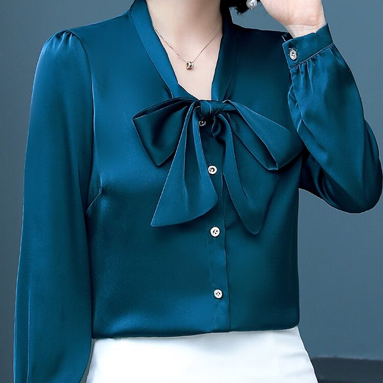トップス シャツ シルクシャツ ミディアム丈 長袖 前開き ボタン リボン シルク かわいい 大人可愛い きれいめ シンプル 上品 おしゃれ かっこいい レトロ きちんと こなれ感 個性的 主役級 存在感 抜け感 オールシーズン ナチュラル ベーシック キュート クール メンズライク 無地 レディース 女性用 ママ OL 通勤 オフィス 学生 通学 デート お出かけ お泊まり イベント 女子会 休日 カフェ ショッピング レストラン コンパ レイヤード 重ね着 普段使い 着回し M L XL モテ