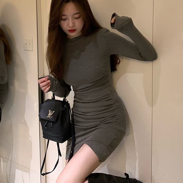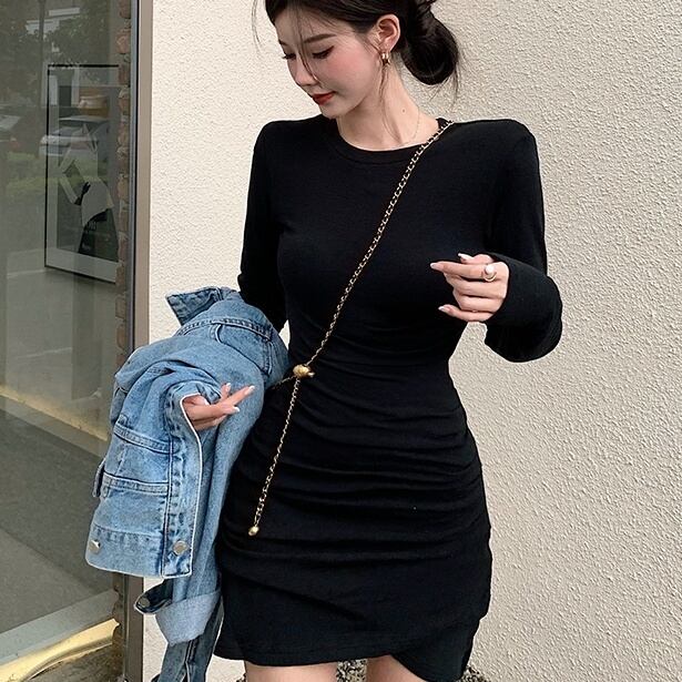 ワンピース ミニワンピース タイトワンピース 長袖 クルーネック タイト ミニ丈 かわいい 大人可愛い きれいめ シンプル 上品 おしゃれ かっこいい レトロ こなれ感 個性的 主役級 存在感 抜け感 オールシーズン キュート ナチュラル ベーシック セクシー クール 無地 レディース 女性用 ママ OL 通勤 学生 通学 デート お出かけ お泊まり イベント 女子会 休日 カフェ ショッピング レストラン コンパ レイヤード 重ね着 普段使い 着回し 脚長 美脚 XS S M L モテ トレンド