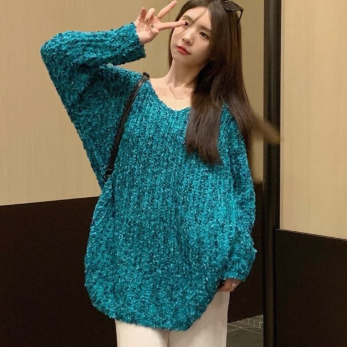 トップス セーター プルオーバー ミディアム丈 長袖 Vネック 萌袖 透かし編み かわいい 大人可愛い きれいめ シンプル 上品 おしゃれ かっこいい レトロ ラフ ルーズ こなれ感 個性的 主役級 存在感 抜け感 オールシーズン キュート ナチュラル ベーシック レディース メンズライク セクシー 無地 女性用 ママ OL 通勤 オフィス学生 通学 デート お出かけ お泊まり イベント 女子会 休日 アウトドア カフェ ショッピング レストラン コンパ レイヤード 重ね着 普段使い 着回し ゆったり