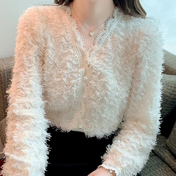 トップス シャツ ブラウス ミディアム丈 長袖 Vネック 前開き デザインボタン パール かわいい 大人可愛い きれいめ シンプル 上品 おしゃれ かっこいい レトロ きちんと こなれ感 個性的 主役級 存在感 抜け感 オールシーズン ナチュラル ベーシック キュート クール エレガント フォーマル レディース 女性用 ママ OL 通勤 学生 通学 デート お出かけ お泊まり イベント 女子会 休日 カフェ ショッピング レストラン コンパ レイヤード 重ね着 普段使い 着回し S M L XL
