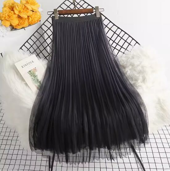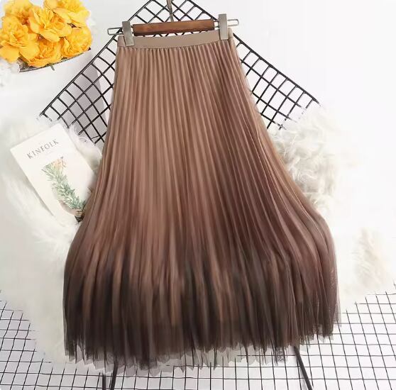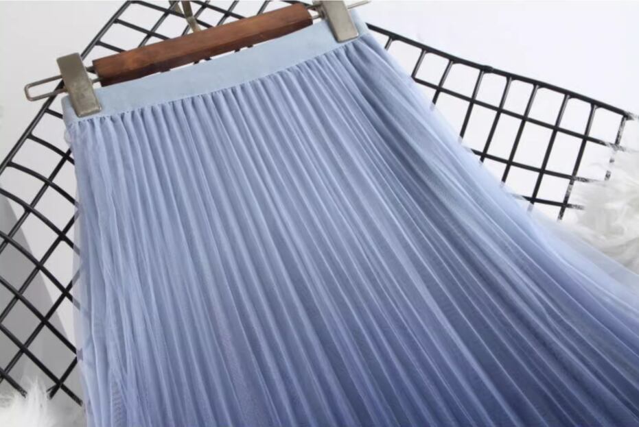 グラデーションチュールプリーツスカート Aライン プリーツ チュール ハイウエスト ウエストゴム 伸縮性 かわいい 大人可愛い きれいめ シンプル カジュアル おしゃれ お洒落 こなれ感 存在感 無地 春 秋 冬 10代 20代 30代 40代 レディース 女性用 ママ お出かけ 休日 着回し 普段使い 楽ちん フリーサイズ 黒 ブラック 青 ブルー カーキ ピンク
