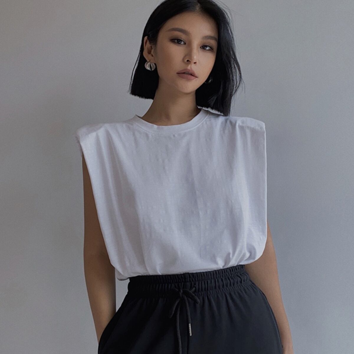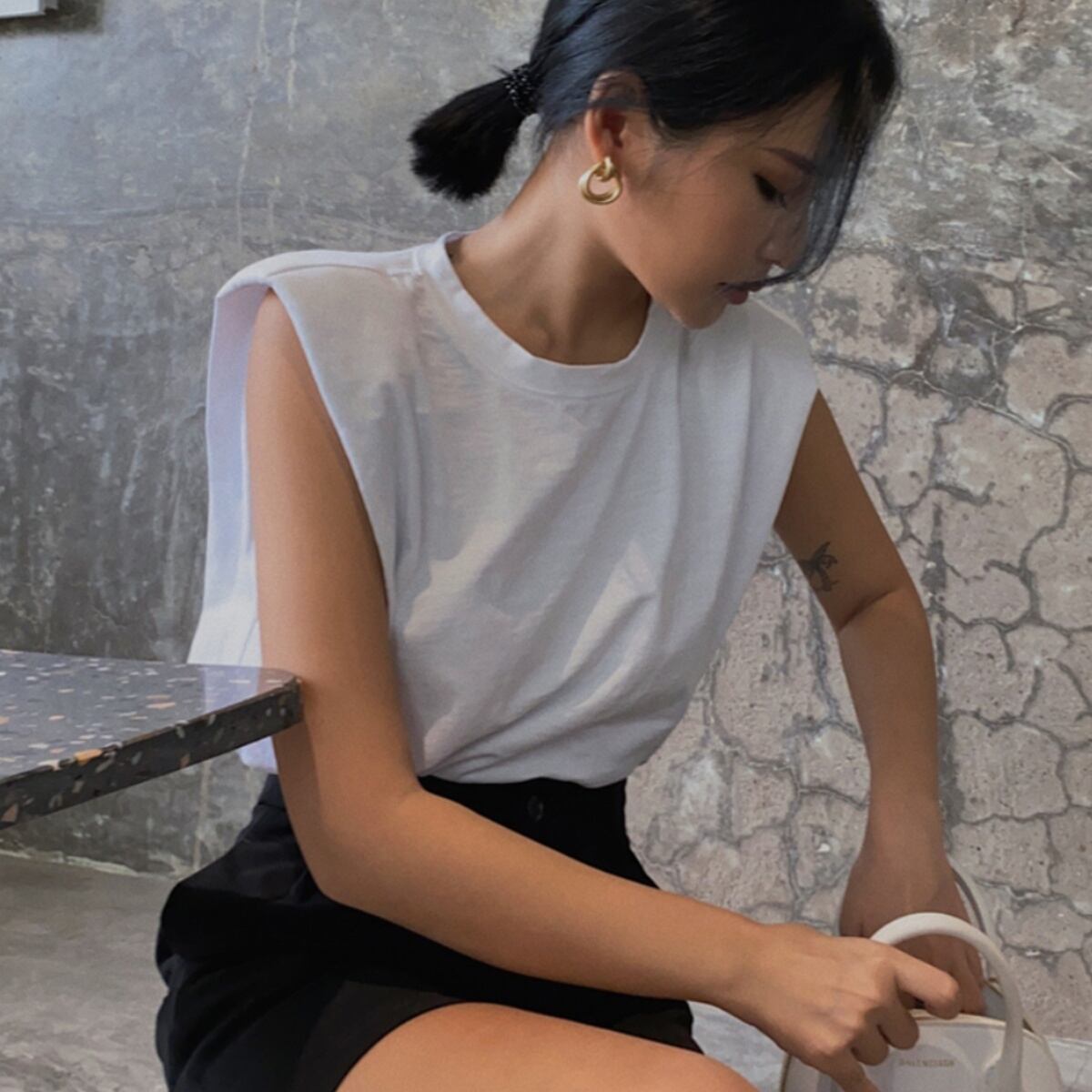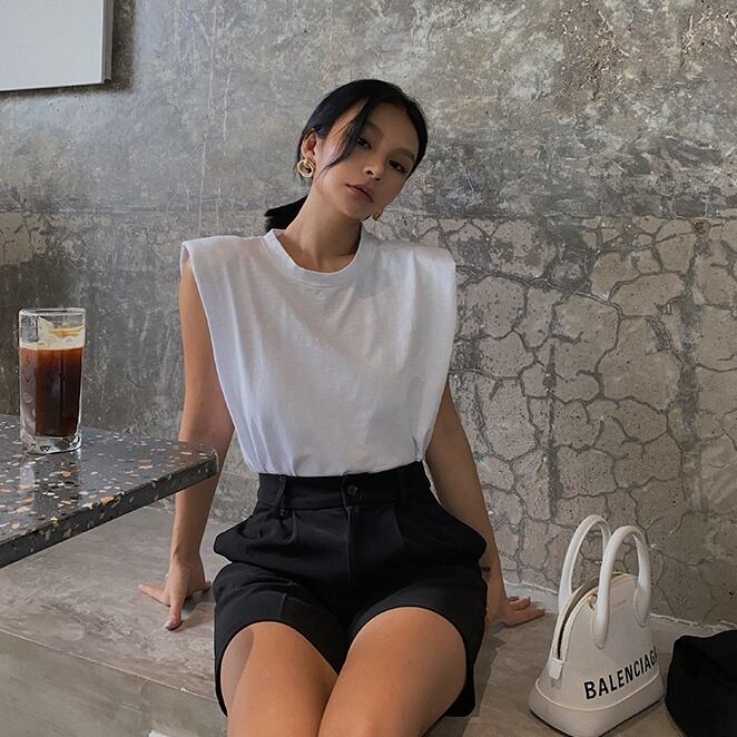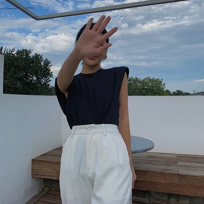 袖なしでラウンドネックのシンプルなデザインは、どんなコーディネートにもマッチします。