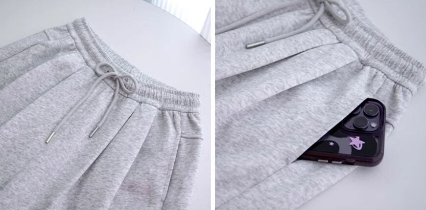 伸縮性のある素材とウエストゴムでラクラクな履き心地です