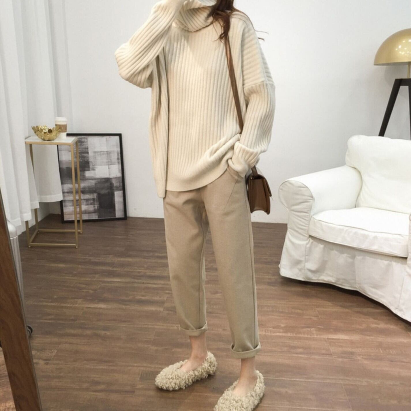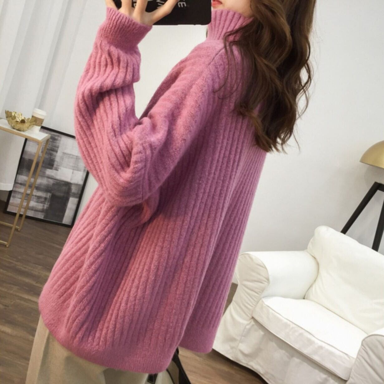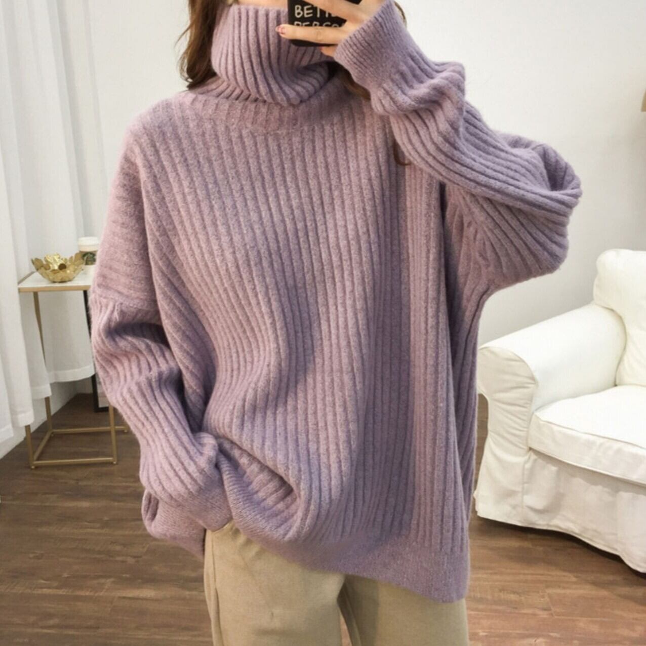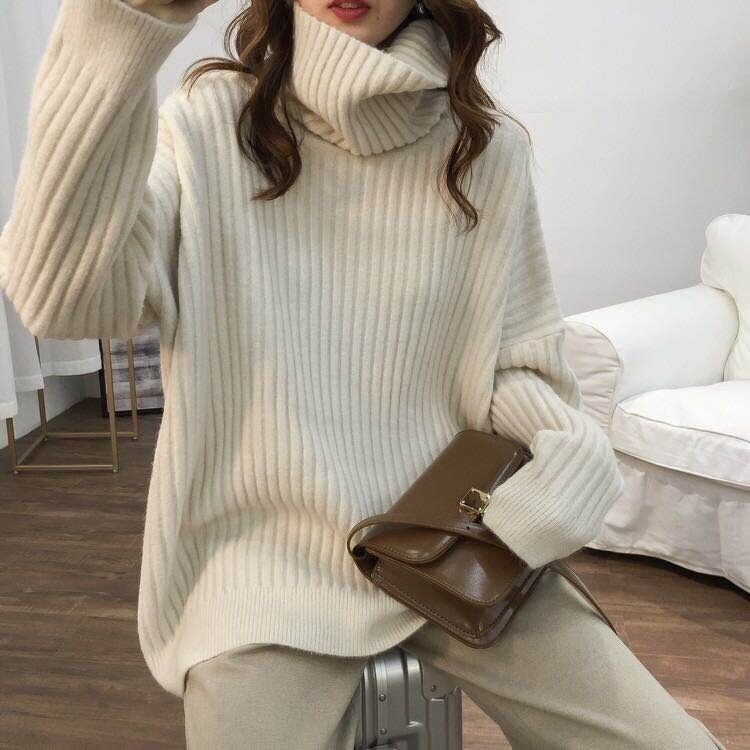 ボリューム袖のドルマンスリーブとワイドなシルエットが特徴のタートルネックニットは、秋冬のおしゃれにぴったり。