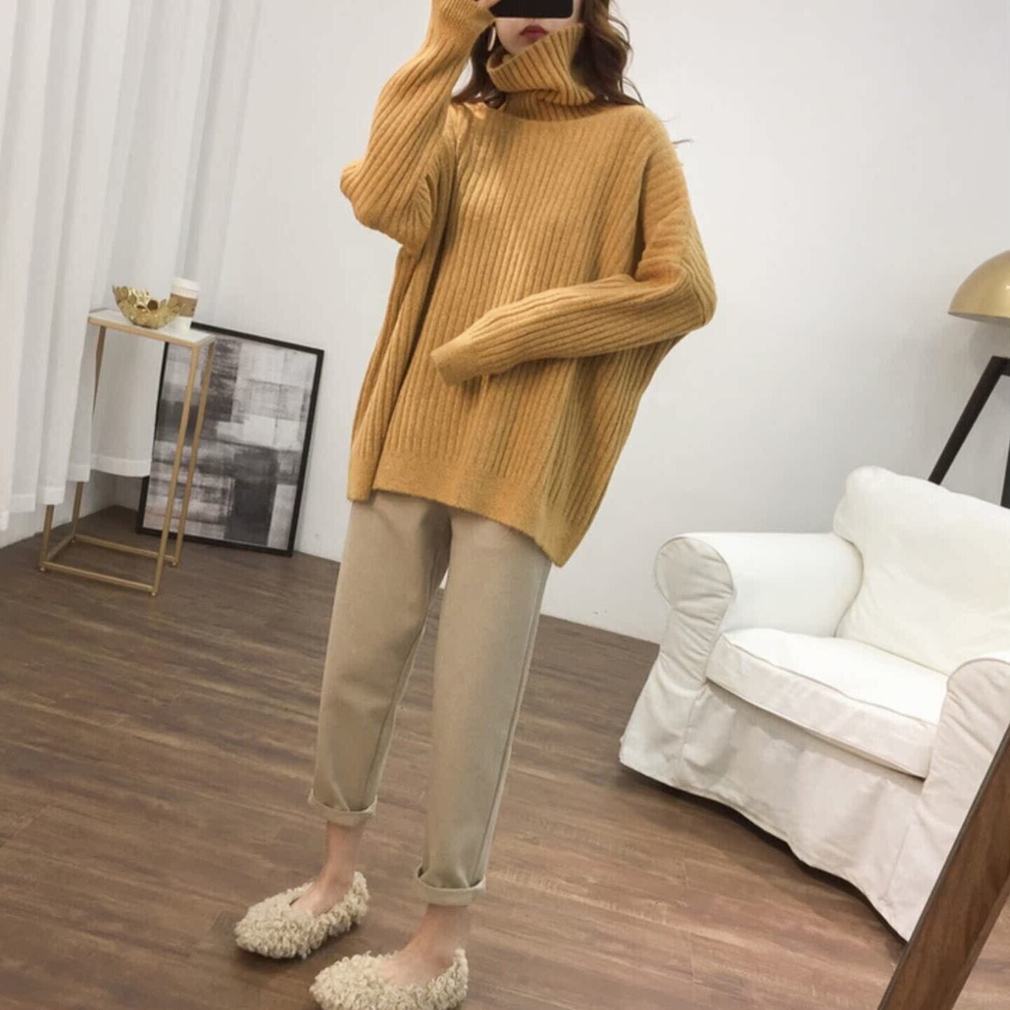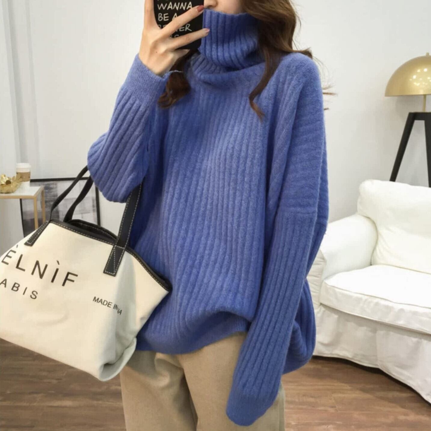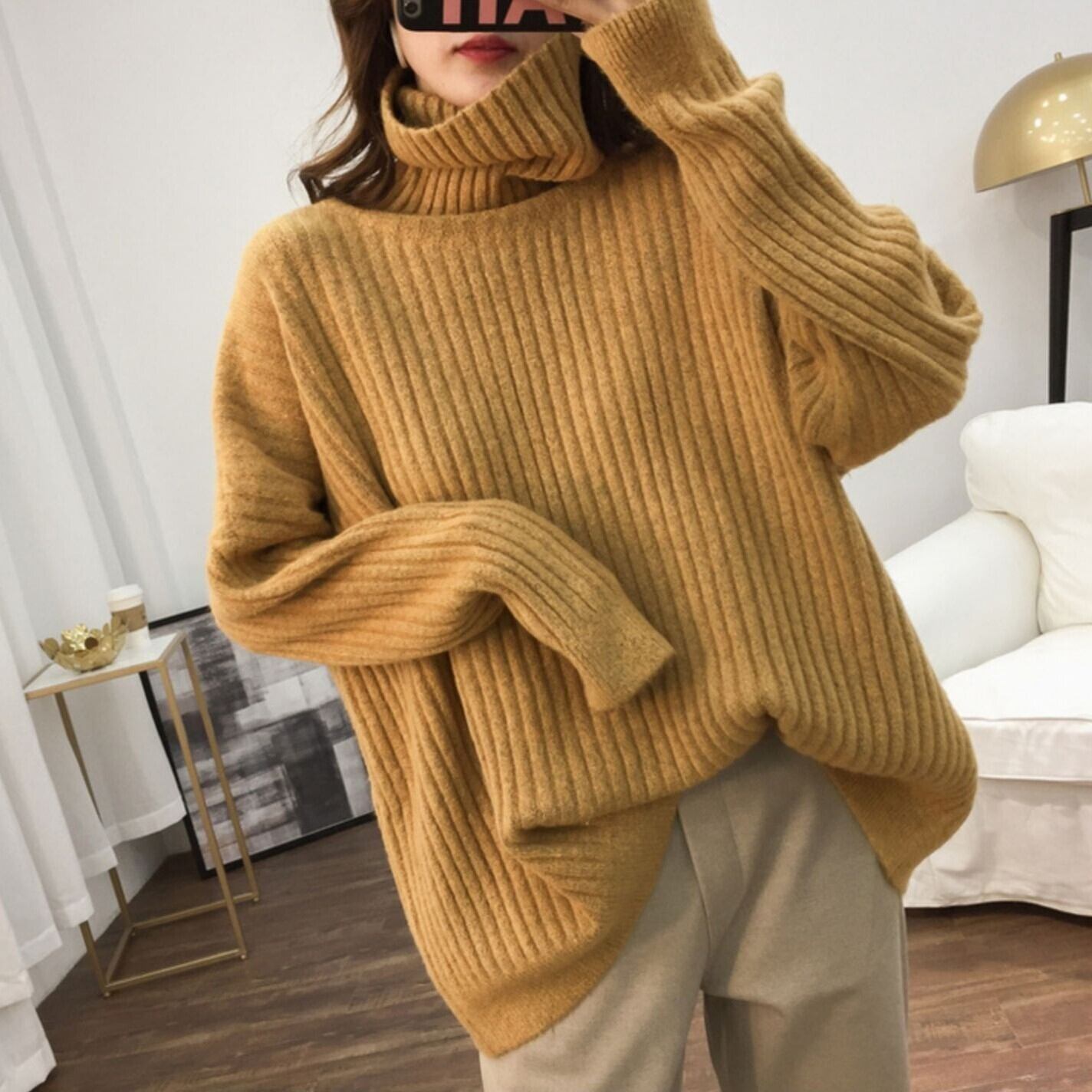 ボリューム袖のドルマンスリーブとワイドなシルエットが特徴のタートルネックニットは、秋冬のおしゃれにぴったり。