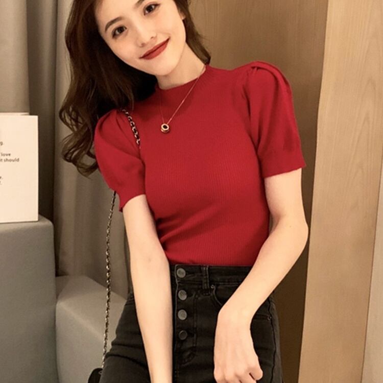 トップス カットソー ミディアム丈 プルオーバー 半袖 ボトルネック パフスリーブ かわいい 大人可愛い きれいめ シンプル 上品 おしゃれ かっこいい レトロ きちんと こなれ感 個性的 主役級 存在感 抜け感 オールシーズン ナチュラル ベーシック キュート クール エレガント フォーマル 無地 レディース 女性用 ママ OL 通勤 オフィス 学生 通学 デート お出かけ お泊まり イベント 女子会 休日 カフェ ショッピング レストラン コンパ レイヤード 重ね着 普段使い 着回し S M L
