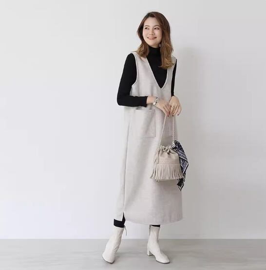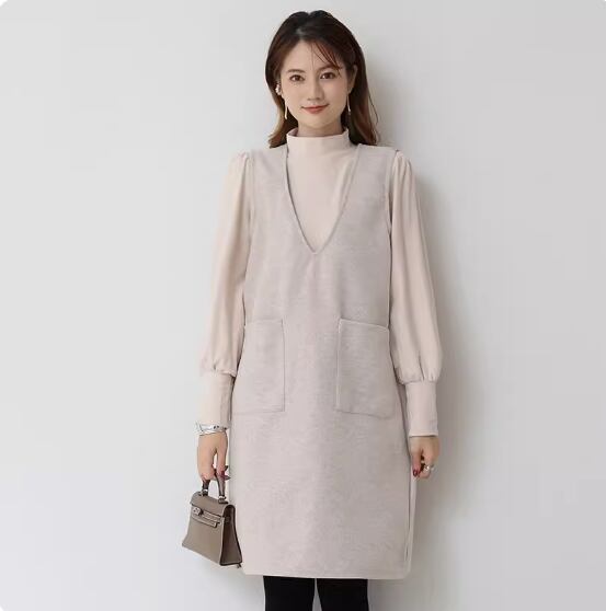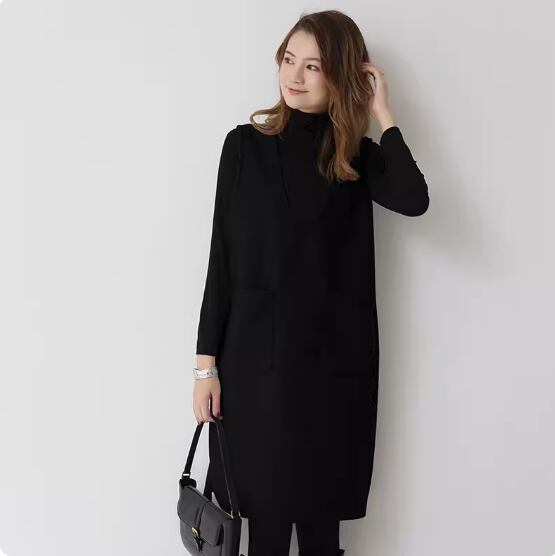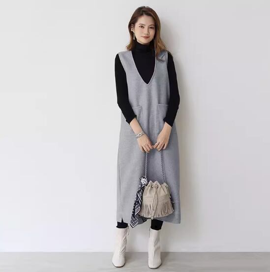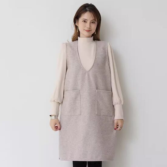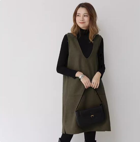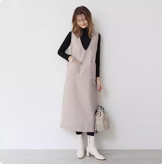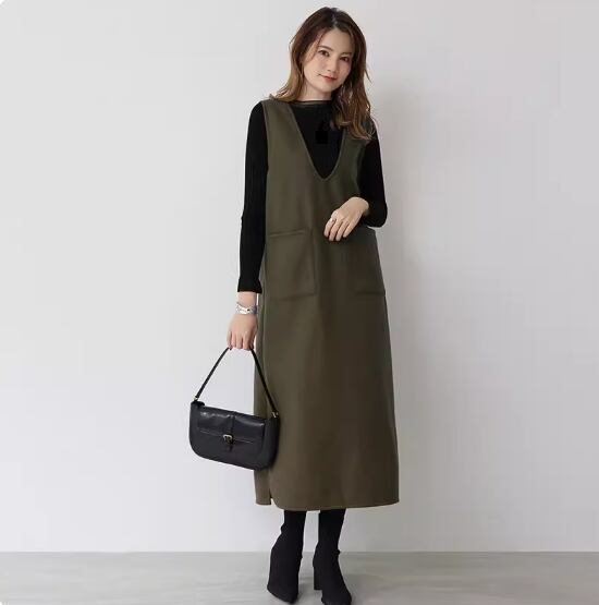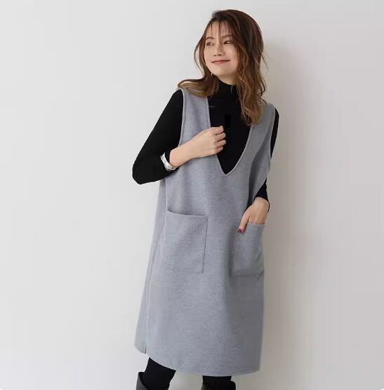 ノースリーブワンピース ひざ丈 ロング丈 袖なし ノースリーブ Vネック Aライン ポケット かわいい 大人可愛い シンプル 大人 上品 おしゃれ お洒落 無地 春 秋 冬 10代 20代 30代 40代 レディース 女性用 ママ デート お出かけ 休日 着回し 普段使い 重ね着 楽ちん M L 黒 ブラック 灰色 グレー アプリコット アーミーグリーン ホワイトグレー ネイビーブルー