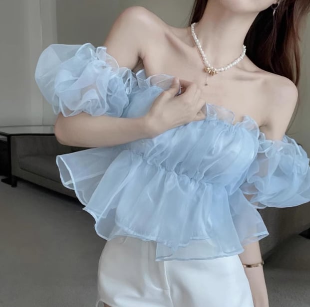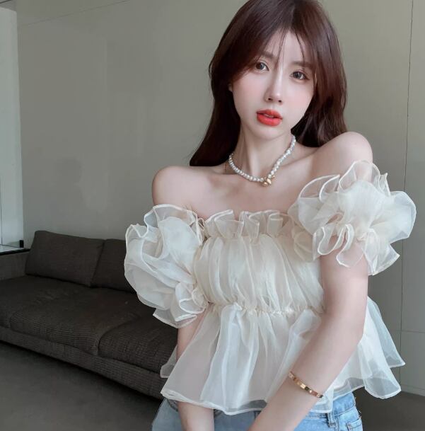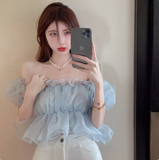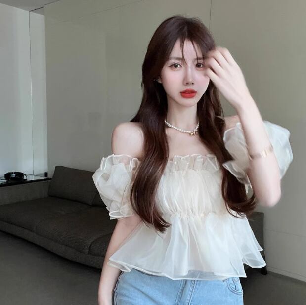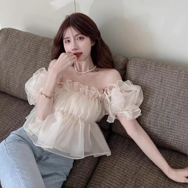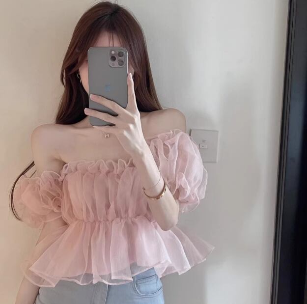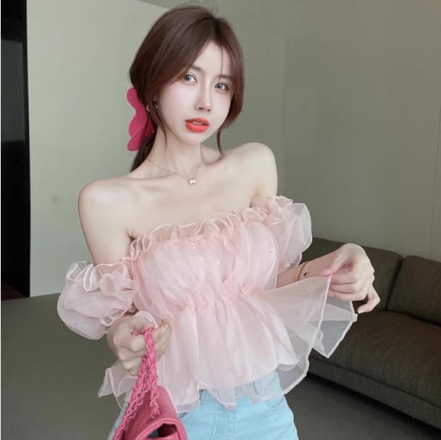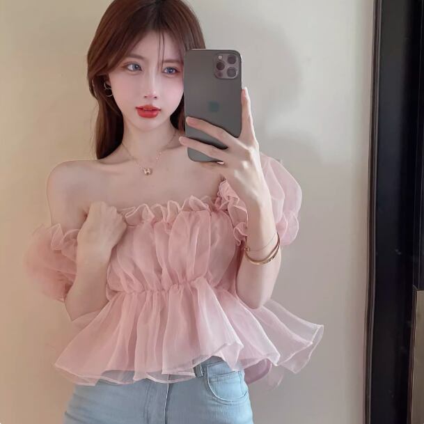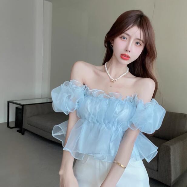 レディース トップス ブラウス ショート オフショルダー フリル レース シフォン 薄手 大人可愛い おしゃれ ガーリー 主役級 存在感 抜け感 ラブリー キュート ロマンティック 無地 夏 OL 学生 デート お出かけ リゾート 旅行 海 プール ビーチ 公園 女子会 休日 バカンス ショッピング コスプレ カフェ モノトーン 韓国 オルチャン 普段使い 着回し モテ トレンド 流行 インスタ映え フリーサイズ アプリコット ピンク ブルー