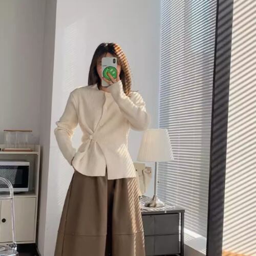 このニットカーディガンで、いつものコーディネートがパッと華やかに。自信を持っておしゃれを楽しんでくださいね。
