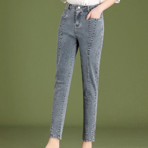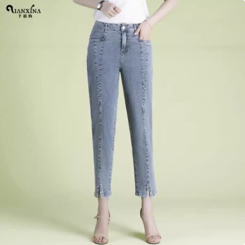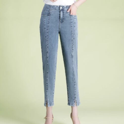 9分丈のデニムパンツは、女性らしさとトレンド感を兼ね備えた一枚。