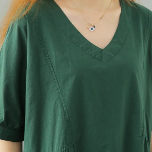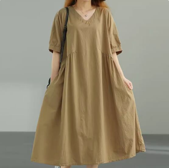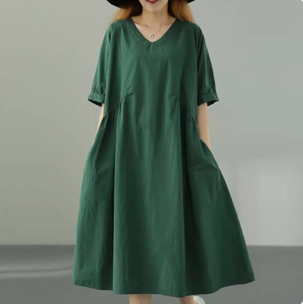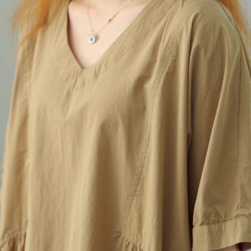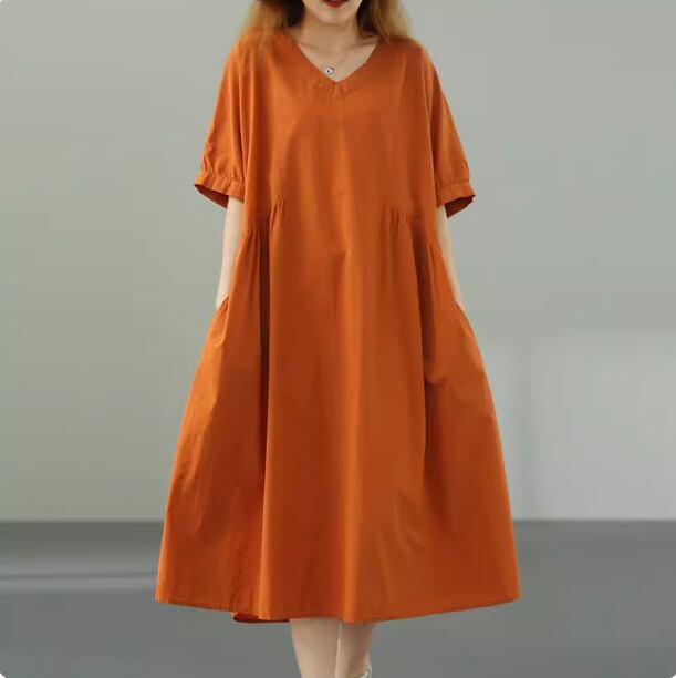 ワンピース サマーワンピース レディース プルオーバー 膝上 5分袖 Vネック 鎖骨 リネン コットン かわいい 大人可愛い きれいめ シンプル カジュアル おしゃれ レトロ こなれ感 ラフ ガーリー ルーズ エレガント キュート 都会的 無地 春 夏 デート お出かけ お泊まり パーティー イベント リゾート 旅行 女子会 休日 バカンス 韓国 オルチャン コーデ 体型カバー 普段使い 着回し トレンド ゆったり ゆる お腹カバー カーキ グリーン オレンジ M L XL 2XL 3XL