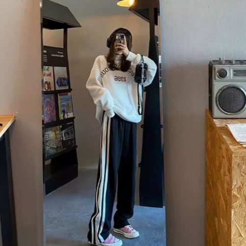 カジュアル リラックス パンツ ジャージ ボトムス フルレングス ストレート かわいい 大人可愛い シンプル カジュアル おしゃれ かっこいい レトロ こなれ感 ラフ メンズライク ボーイッシュ スポーティー ルーズ 個性的 クール 存在感 とろみ感 抜け感 カレッジ風 学生風 ベーシック Y2K ダンス 無地 春 夏 秋 冬 クラブ 学生 通学 お出かけ イベント 旅行 公園 女子会 休日 韓国 オルチャン コーデ 楽ちん 体型カバー 美脚 脚長 普段使い 着回し モテ トレンド 定番