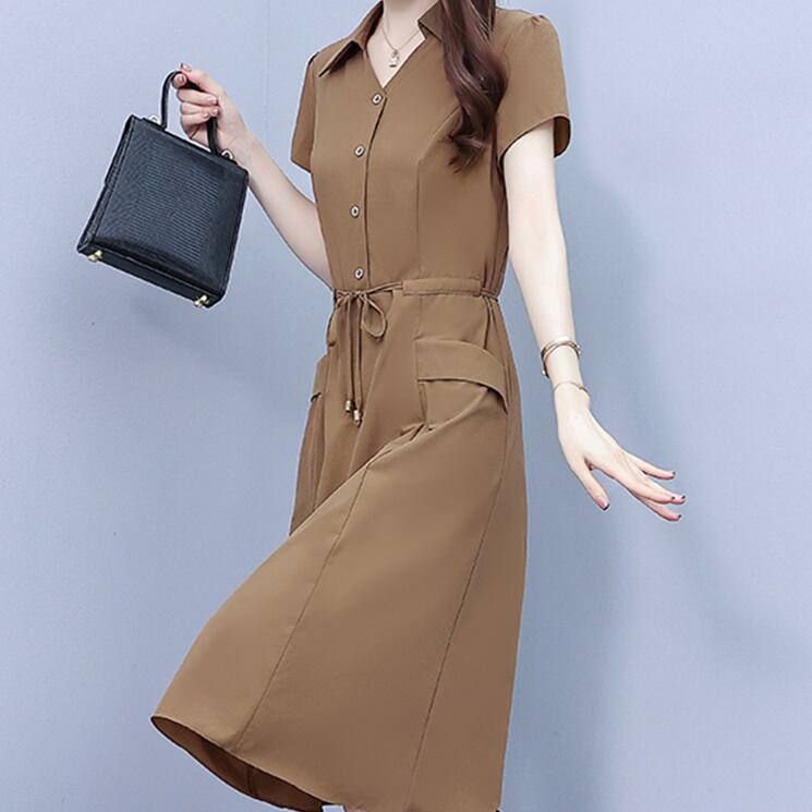 ワンピース ミディアム丈ワンピース 半袖 襟付き ハーフボタン ミディアム丈 ウエストマーク ポケット かわいい 大人可愛い きれいめ シンプル 上品 おしゃれ かっこいい レトロ ラフ こなれ感 個性的 主役級 存在感 抜け感 春 夏 キュート ナチュラル ベーシック 清楚 クール 無地 レディース 女性用 ママ OL 通勤 学生 通学 デート お出かけ お泊まり イベント 女子会 休日 カフェ ショッピング レストラン コンパ レイヤード 重ね着 普段使い 着回し 脚長 美脚 M L XL 2XL