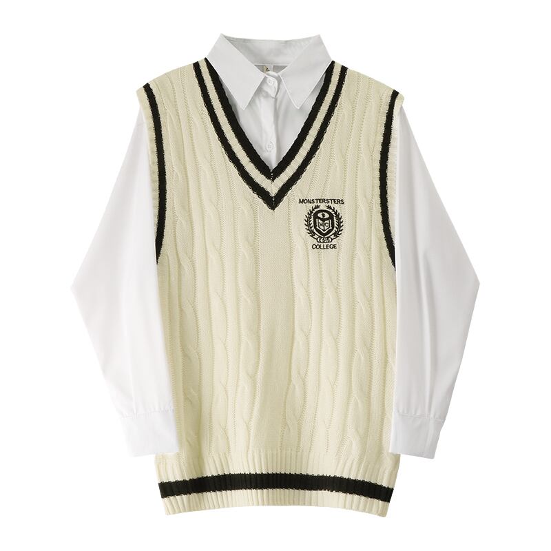 セットアップ 上下セット 3点セット 制服風 シャツ 長袖 角襟 前開き ボタン ニットベスト プルオーバー ミニスカート ミニ丈 かわいい 大人可愛い きれいめ シンプル 上品 おしゃれ かっこいい レトロ きちんと こなれ感 個性的 主役級 存在感 抜け感 オールシーズン ナチュラル ベーシック キュート クール メンズライク ガーリー レディース 女性用 学生 通学 デート お出かけ お泊まり イベント 女子会 休日 コスプレ ハロウィン レイヤード 重ね着 普段使い 着回し S M L XL